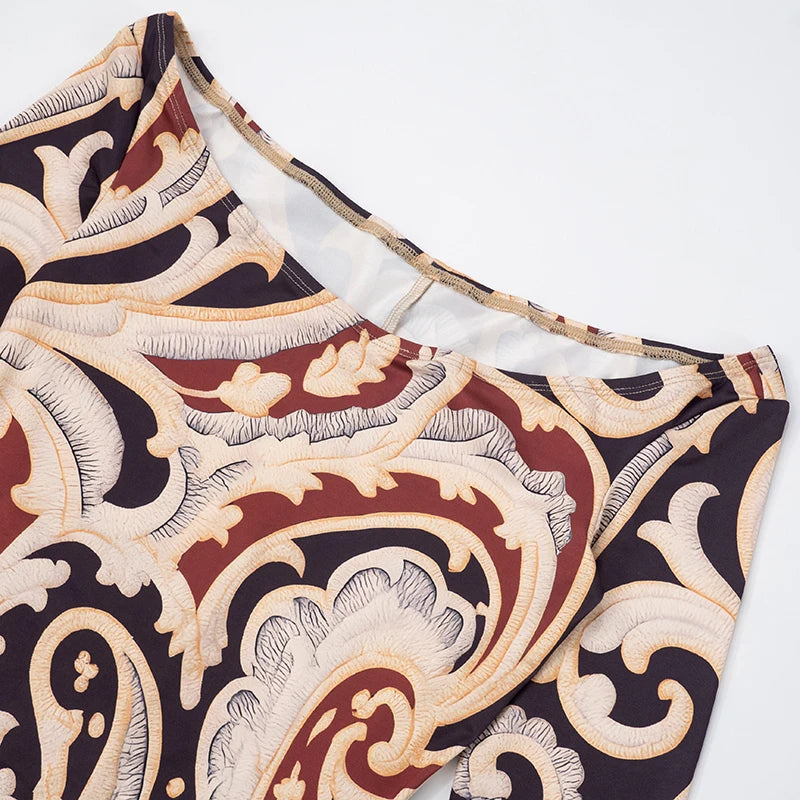 CUTENOVA Fall New Colorful Printed Women'S Jumpsuit One-Shoulder Strapless Long Sleeves Slim Fit Elastic Ankles Jumpsuit Female