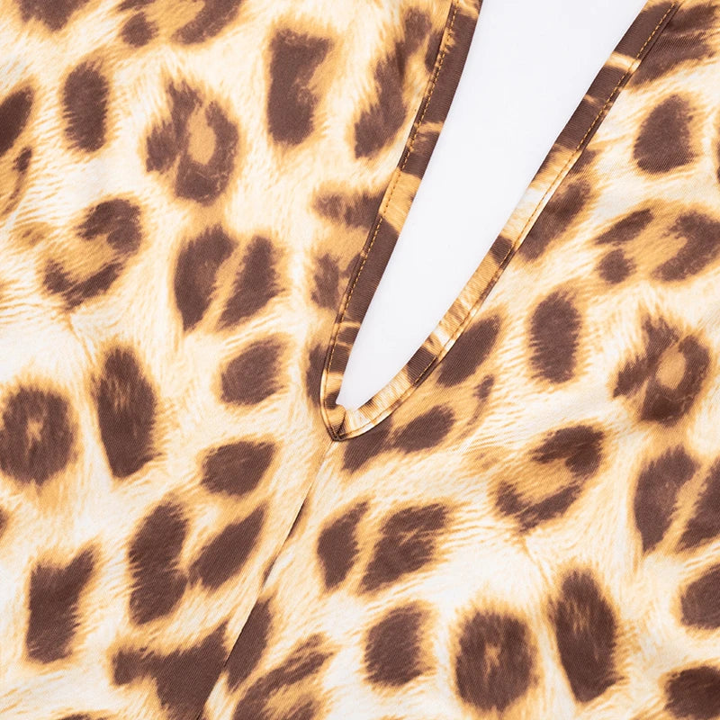 CUTENOVA Women'S Fall/Winter New Leopard Print Deep V-Neck Back Hollow Out Bodycon Jumpsuit Sexy Fashion Streetwear Jumpsuit