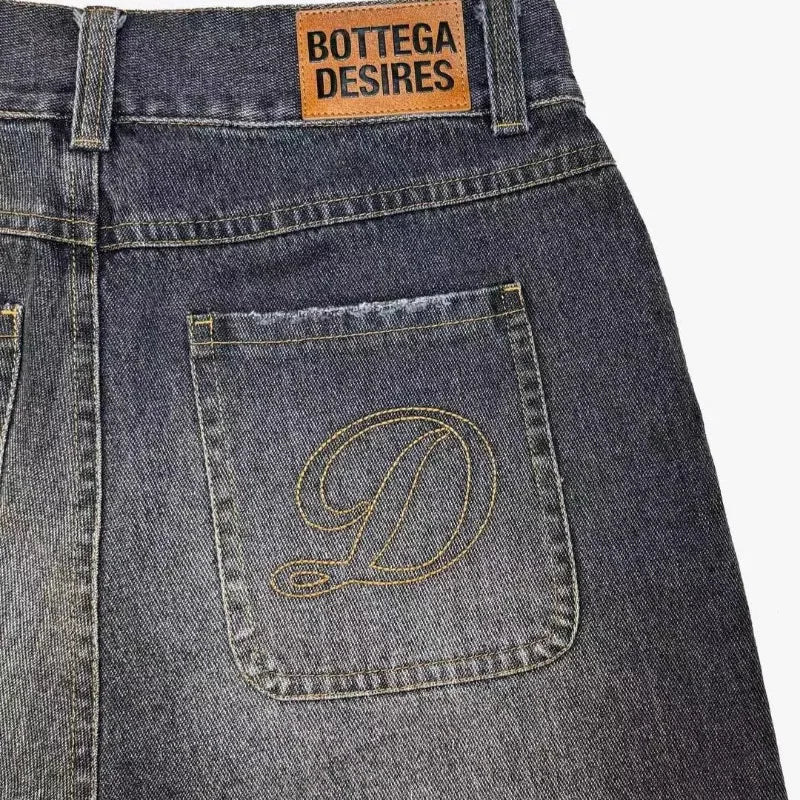 Deeptown Y2k Vintage Harajuku Denim Shorts Women Washed Letter Embroidery Tassels American Retro Jeans Man Baggy Hip Hop Jorts