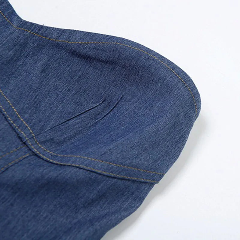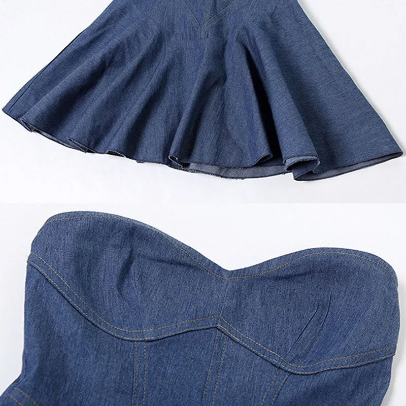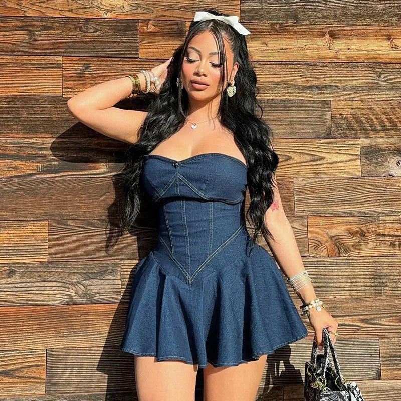 DongCMY 2026 Summer Women's New Bag Hip Sexy Mini Dress Women Solid Wrapped Chest Sleeveless Classic Imitation Denim Dress