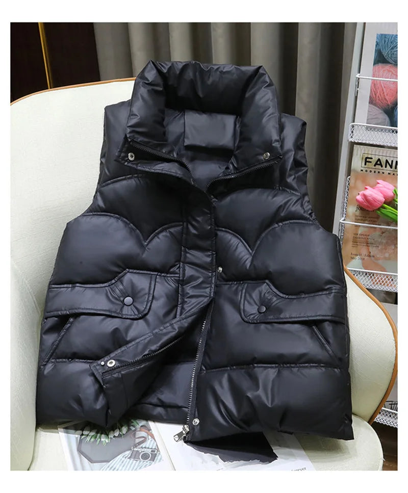 Down Cotton Vest Women 2025 New Autumn Winter Fashion Stand Collar All-Match Warm Sleeveless Waistcoat Jacket Ladies Female Tops