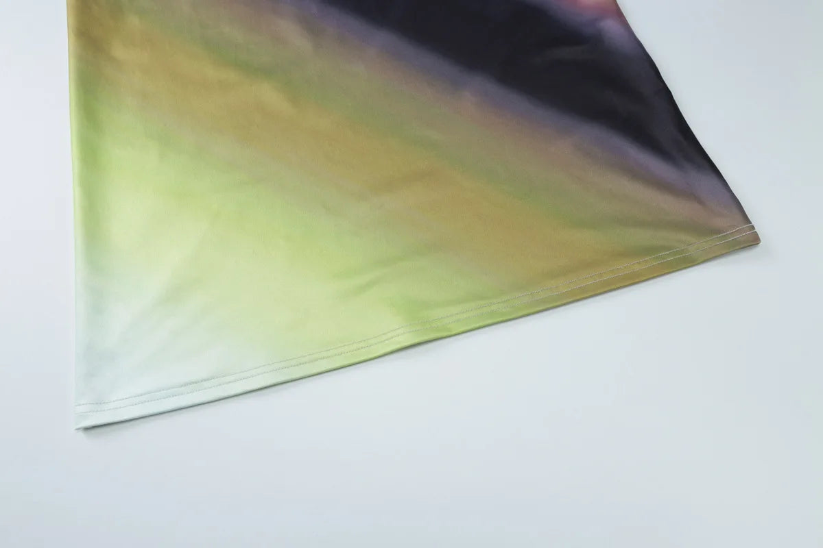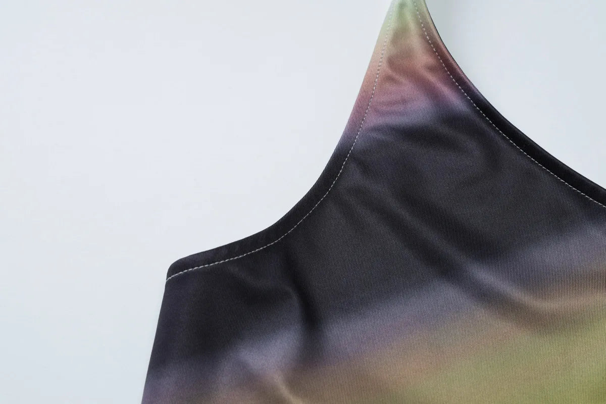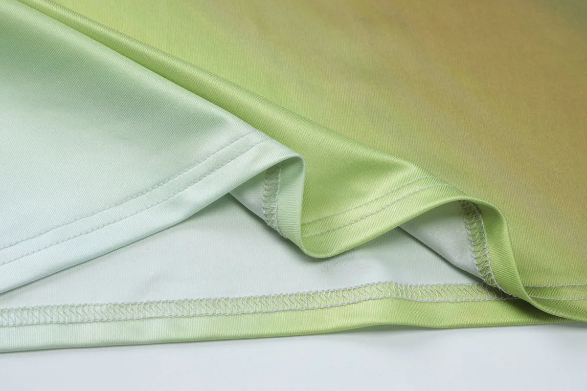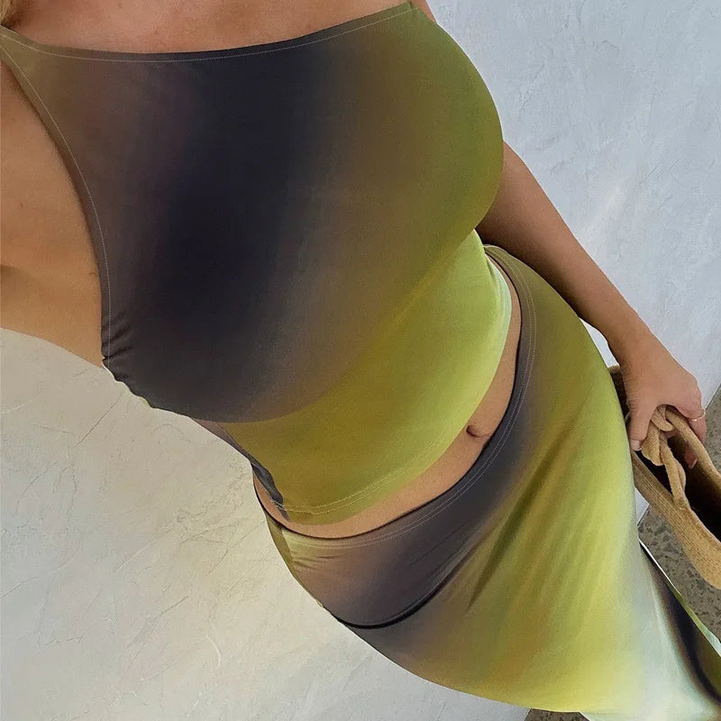 Elegant One Shoulder Green Gradient Color Vacation Beach Dress 2 Piece Set Women One Shoulder Backless Tank Top Long Skirts Suit