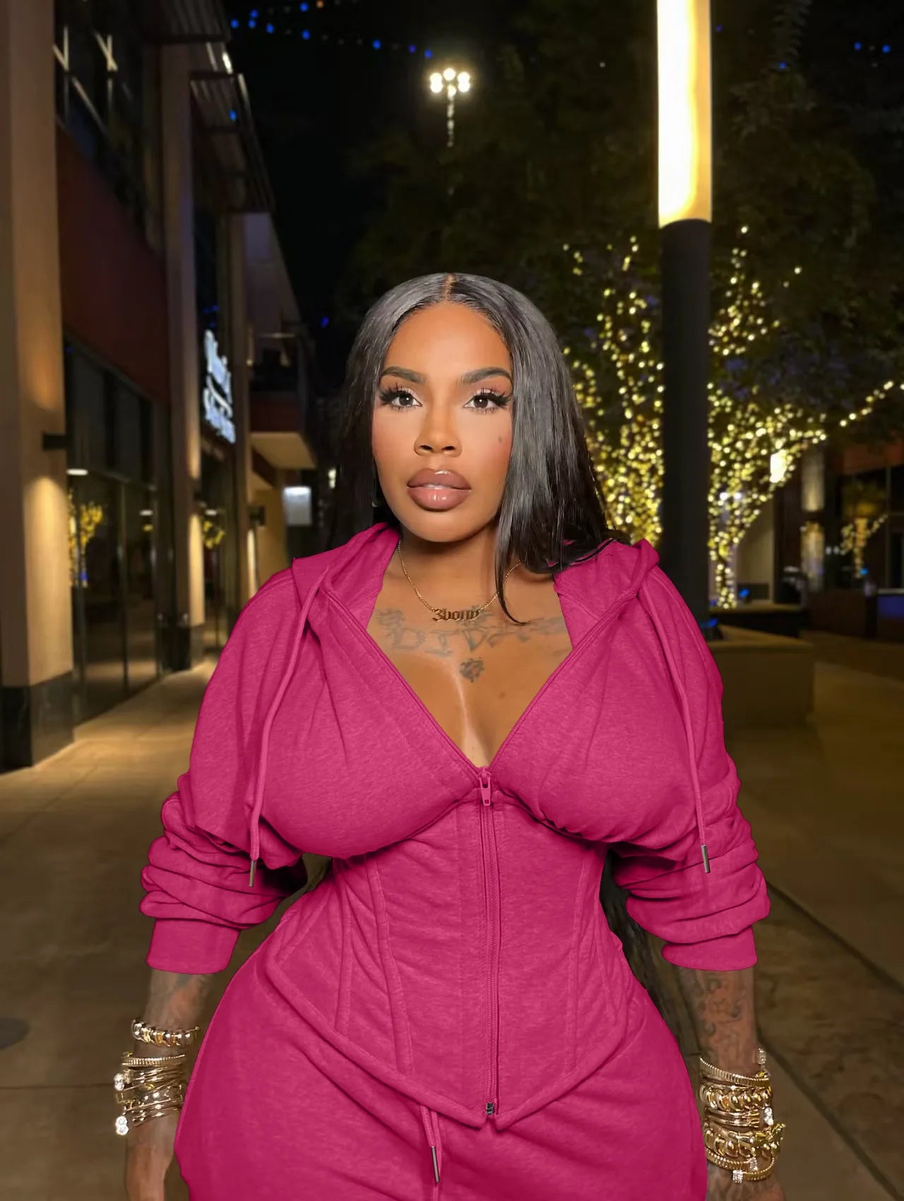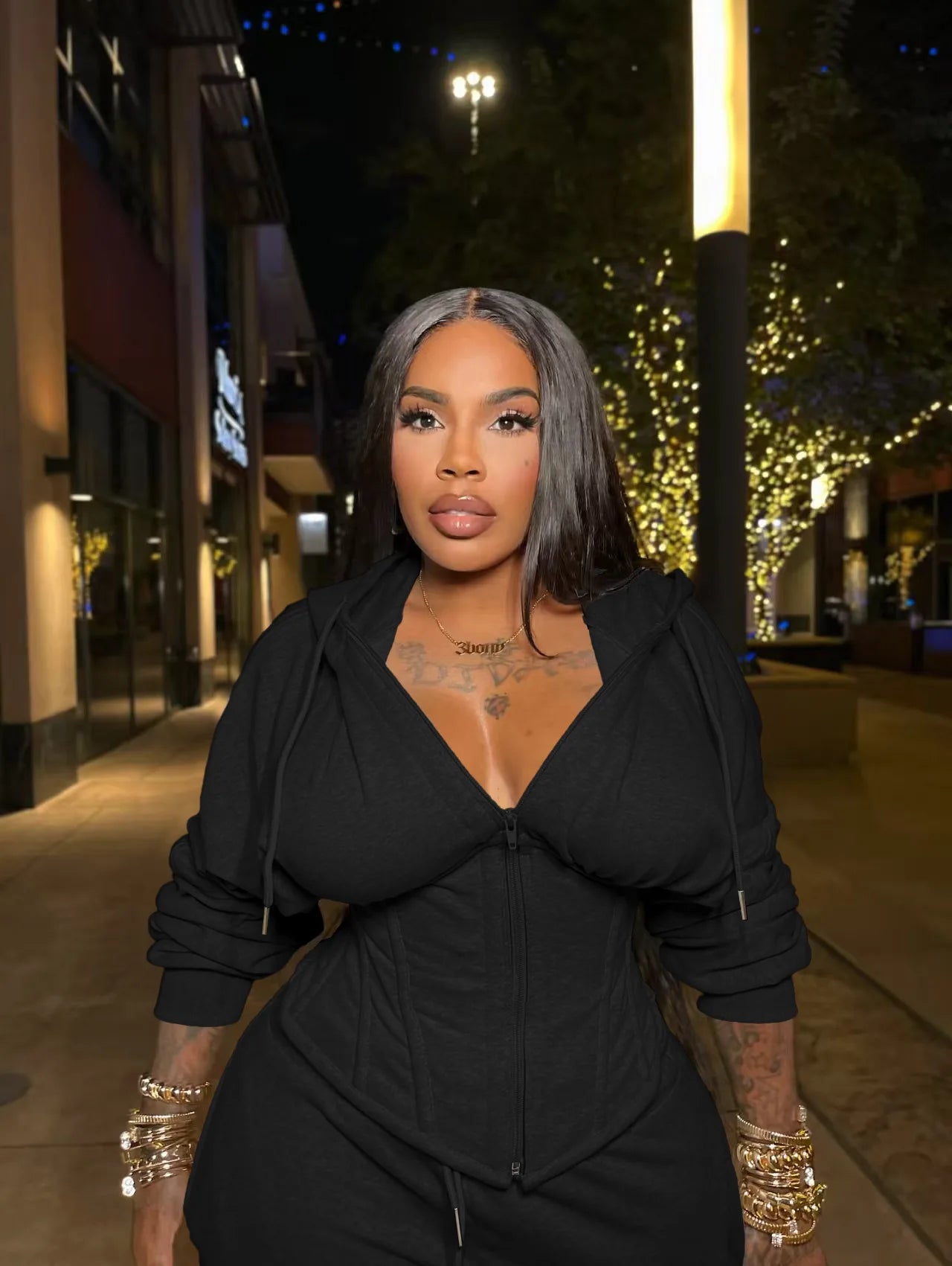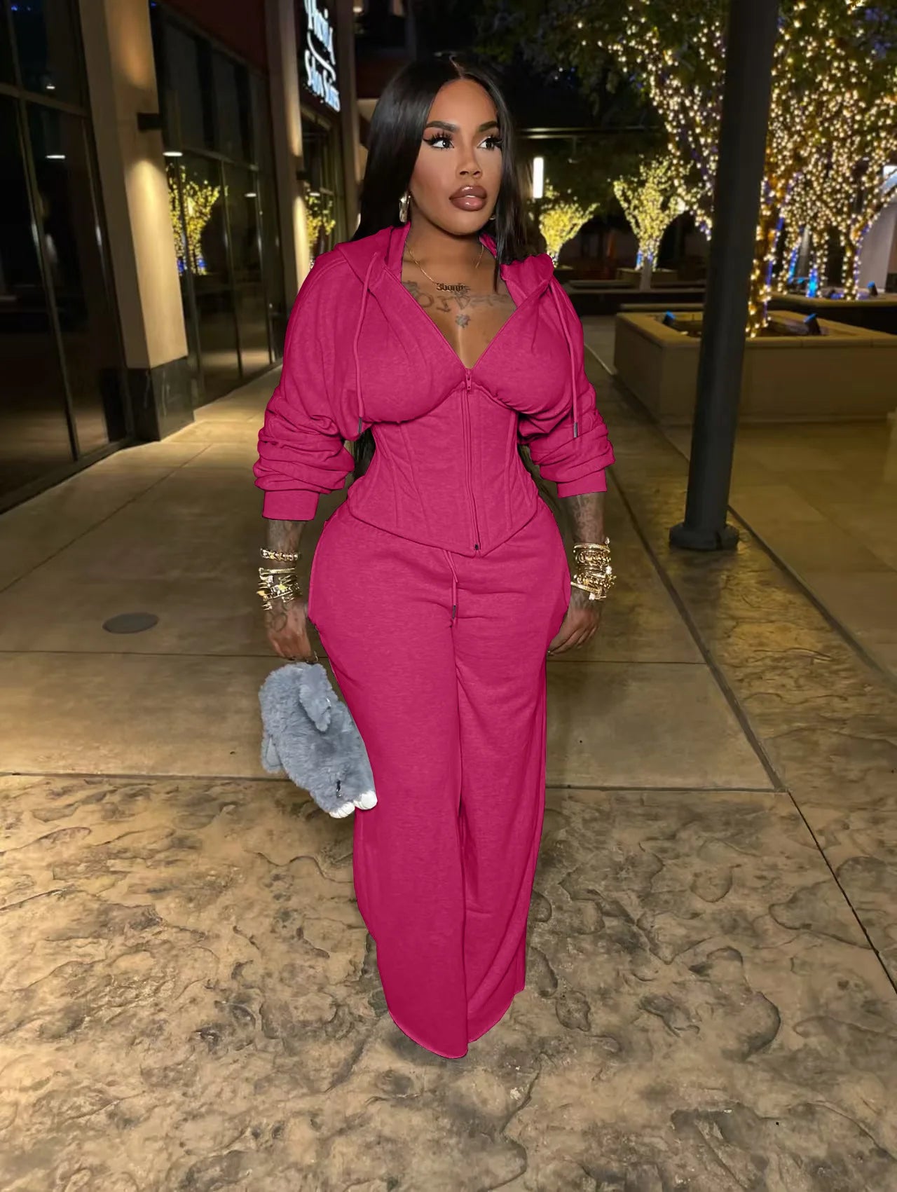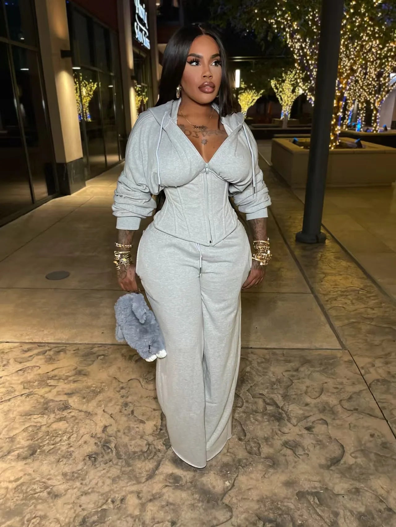 FAGADOER Casual 2 Pieces Set for Woman Outfits Solid Color Bandage Patchwork Hooded Crop Top and Pants Suit Female Streetwear