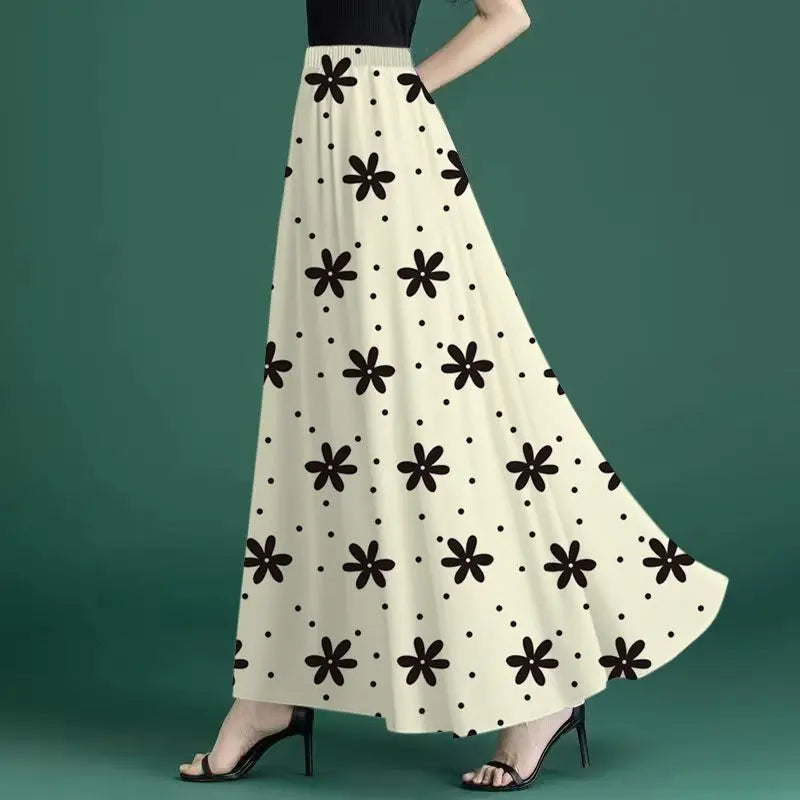 Fashion Elastic Spliced Printed Vintage Chiffon Skirts Women's Clothing 2026 Summer New Loose Office Lady High Waist Skirts