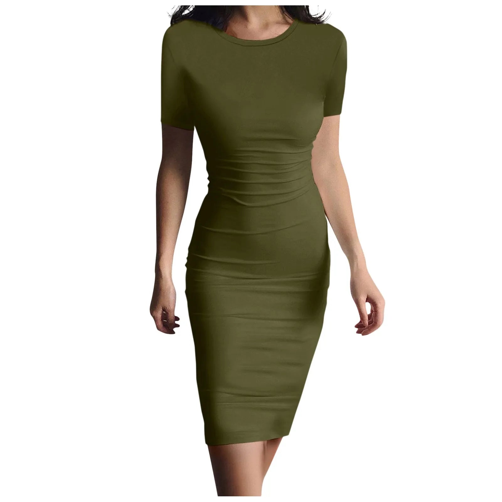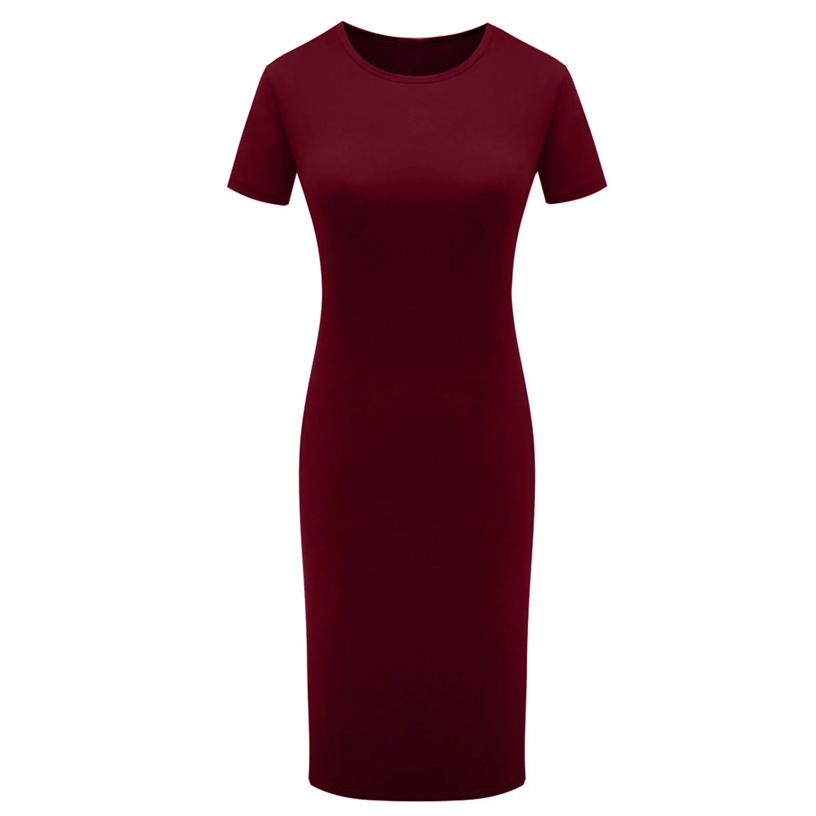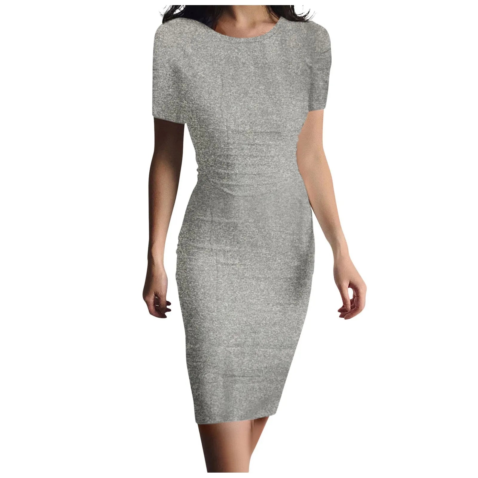 Fashion Women Short Sleeve Slim Fitting Dress Summer Solid Color Round Neck Elegant Dress Tight Robe Street Style Skinny Dress