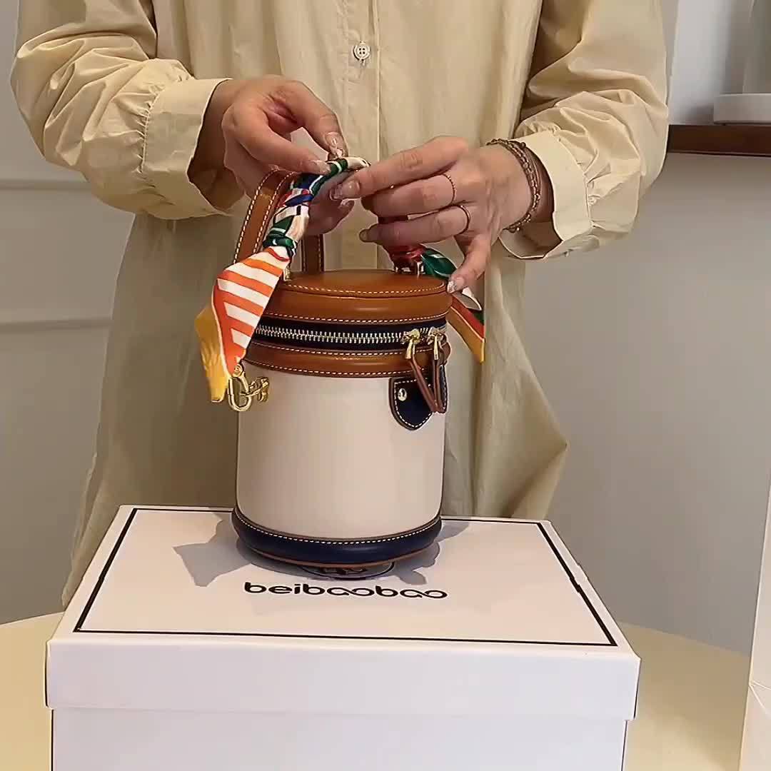 Fashionable Round Cylinder Handbag | Small Shoulder and Crossbody Women'S Bag, Synthetic Faux Leather, Zipper Closure