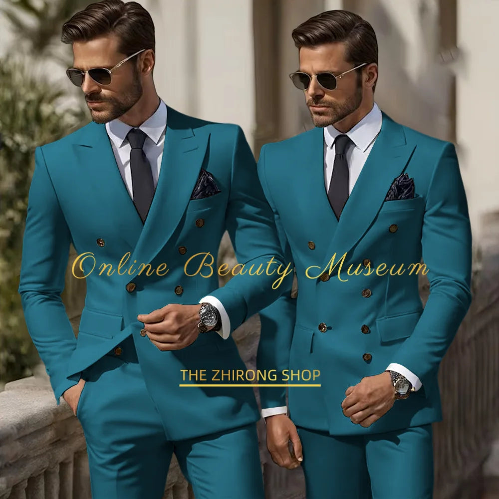 Formal Elegant Stylish Ivory Double Breasted 2 Piece Wedding Suits for Men, Classic Tuxedo Bespoke For Groom Prom Party Dress
