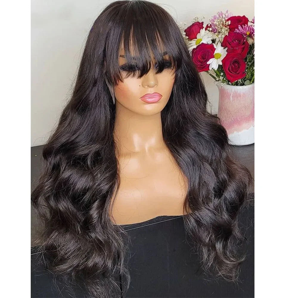 FUGANGXIU-12A Body Wave Human Hair Wig With Bang Full Machine Made Glueless Wear And Go Brazilian Virgin Hair Natural Color