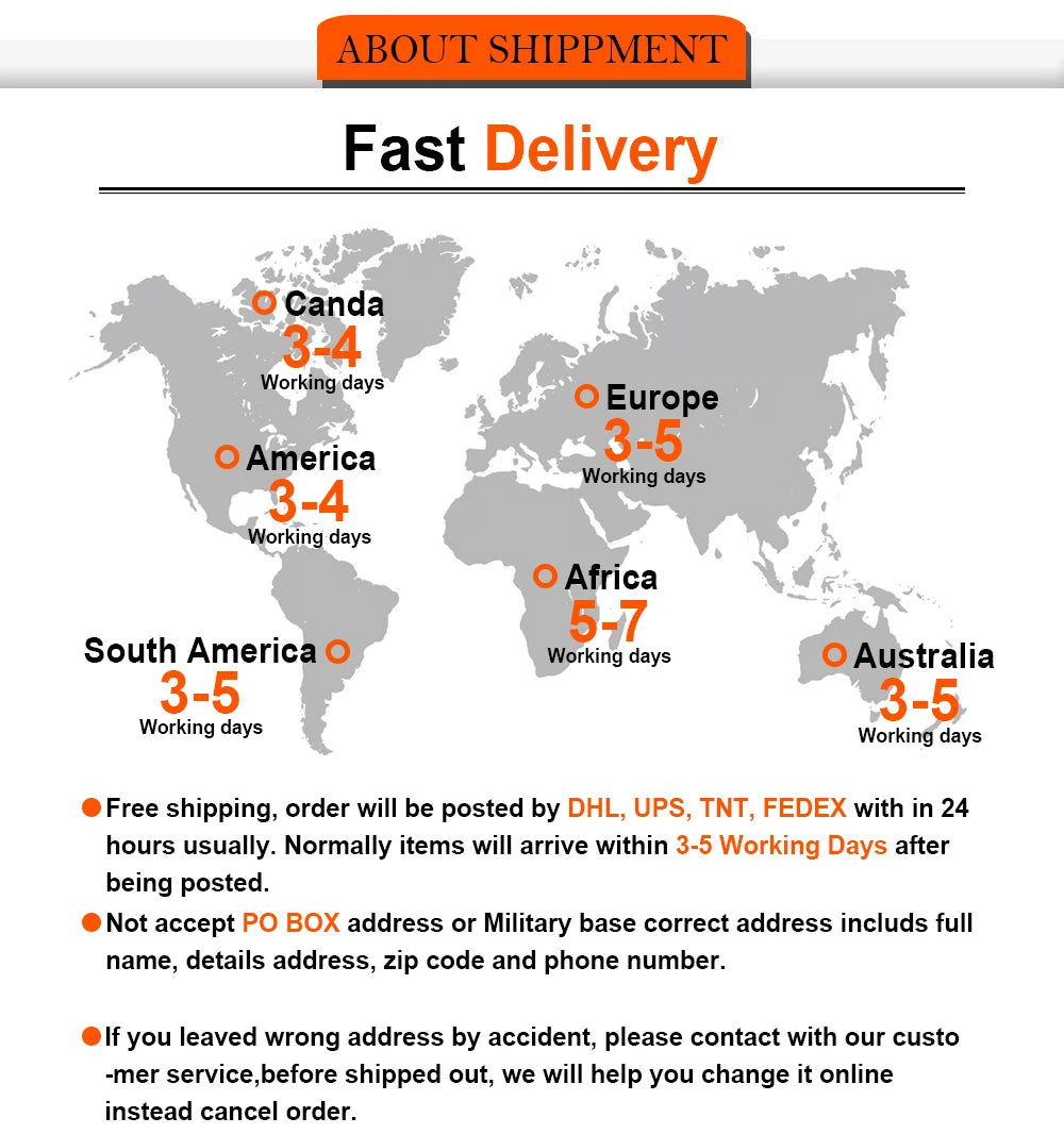 Shipping Time: 3-7 Working Days Delivery after sent