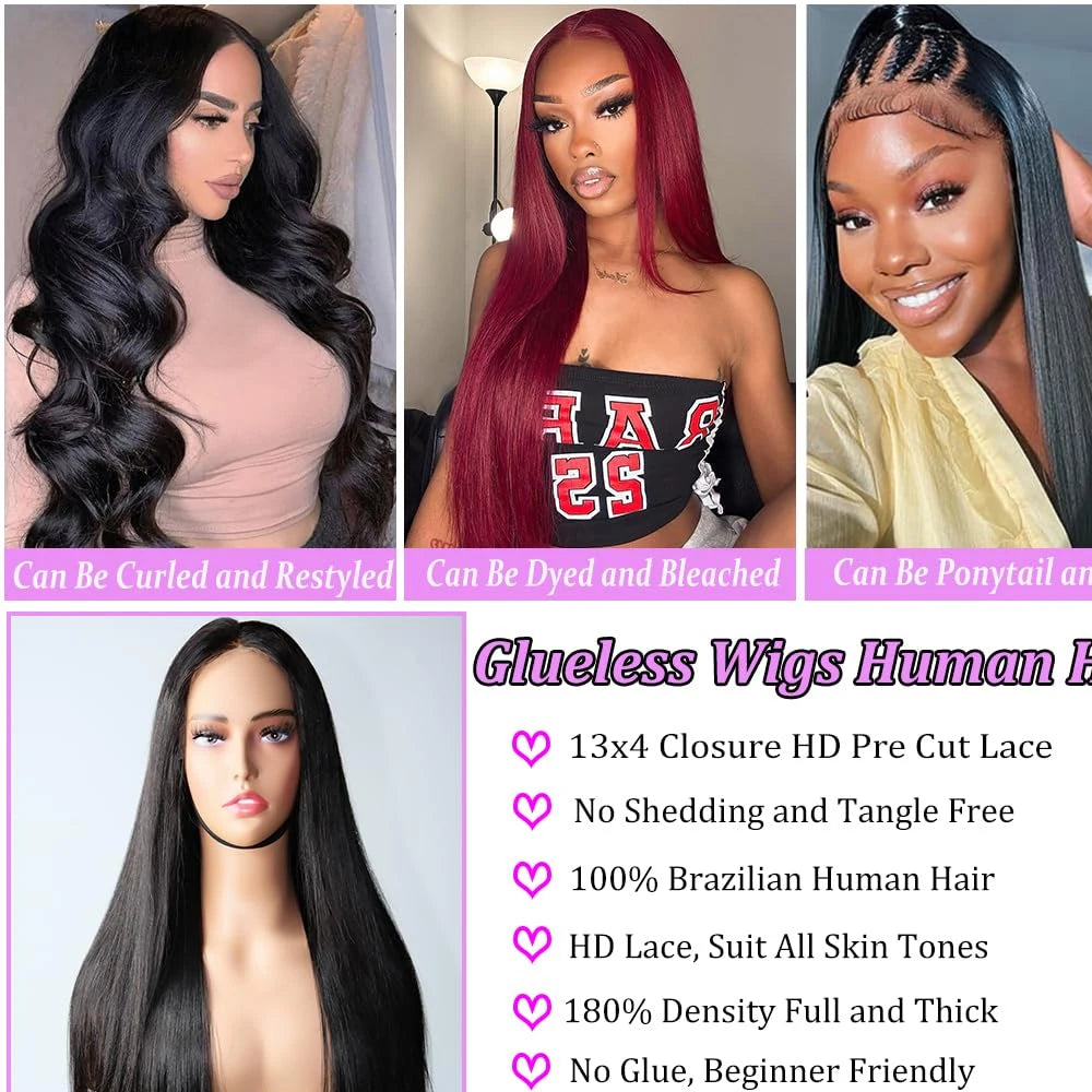 Glueless Wigs HD Transparent Lace Front Human Hair Wig 13x4 13x6 Bone Straight Frontal Wig Pre Plucked 4x4 HD Lace Closure Wig