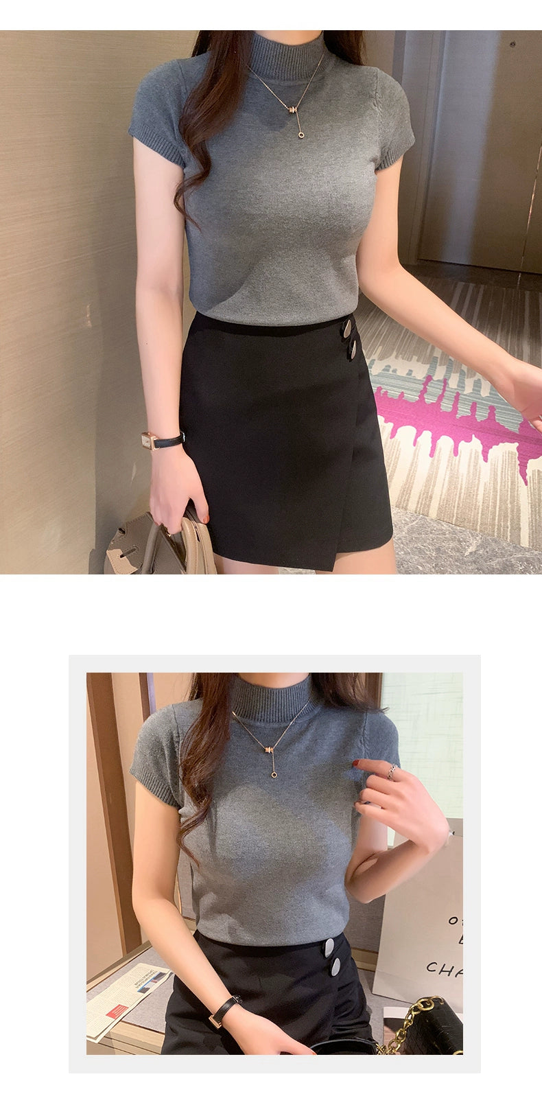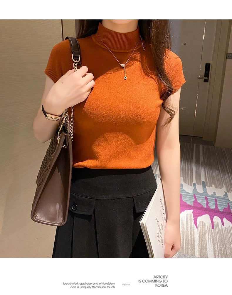 Half Turtleneck Summer Knitting Solid Color Suit Spring and Autumn Short Sleeve