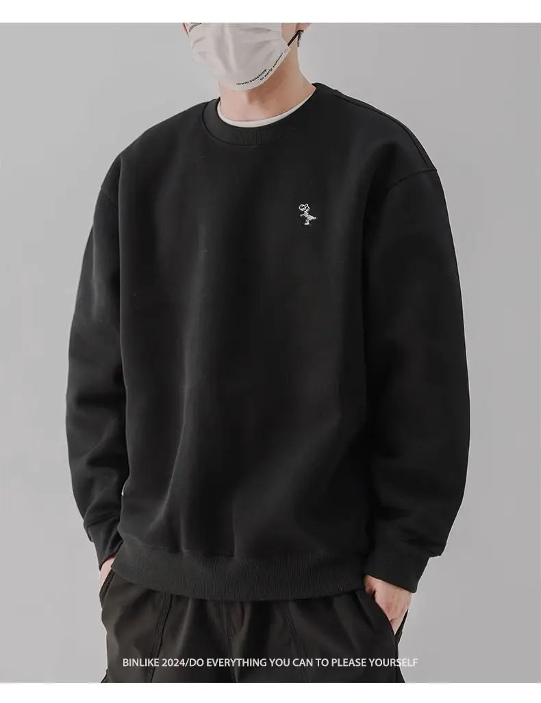Heavy Sweatshirt Men's Autumn Trendy Embroidered American Long-sleeved Base Top Round Neck Loose Pullover