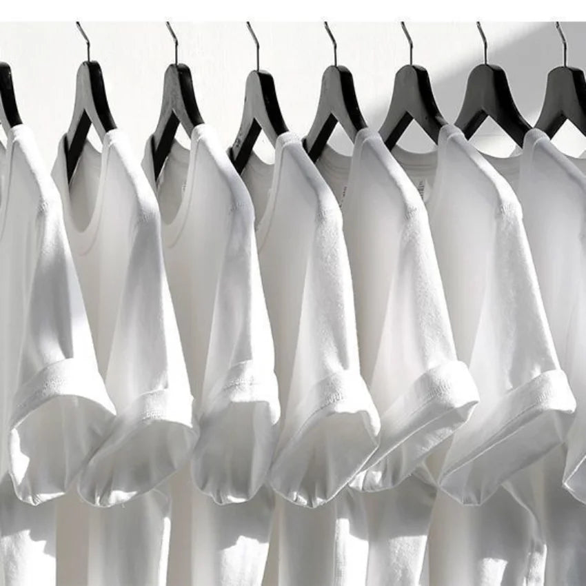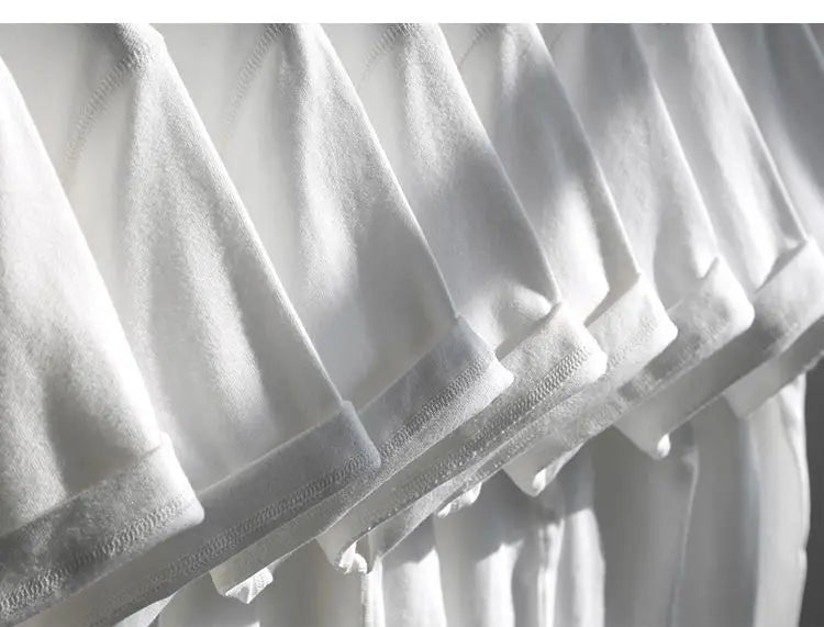 Heavyweight Impermeable 300g Carbon Matte Pure Cotton Thick Short Sleeved T-shirt Men and Women Pure White Simple Base Shirt