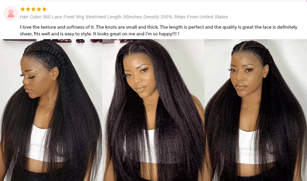 High Density Kinky Straight 360 Lace Front Wigs Human Hair Brazilian 40 Inch Yaki Straight 13x6 HD Lace Frontal Wig Preplucked