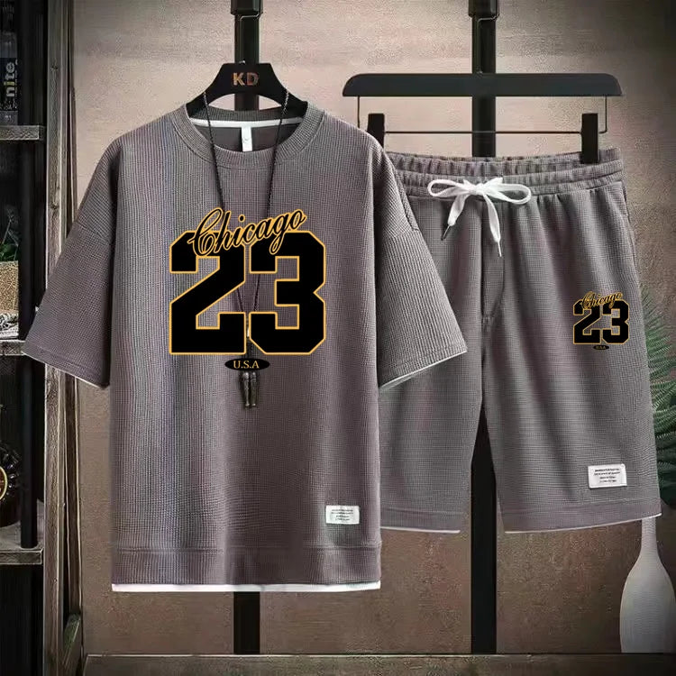 High Quality Men's Korea Comfortable and Summer  Fashion Print Sports Suit Fitness Jogging Daily Casual Wear Beach Shorts Set