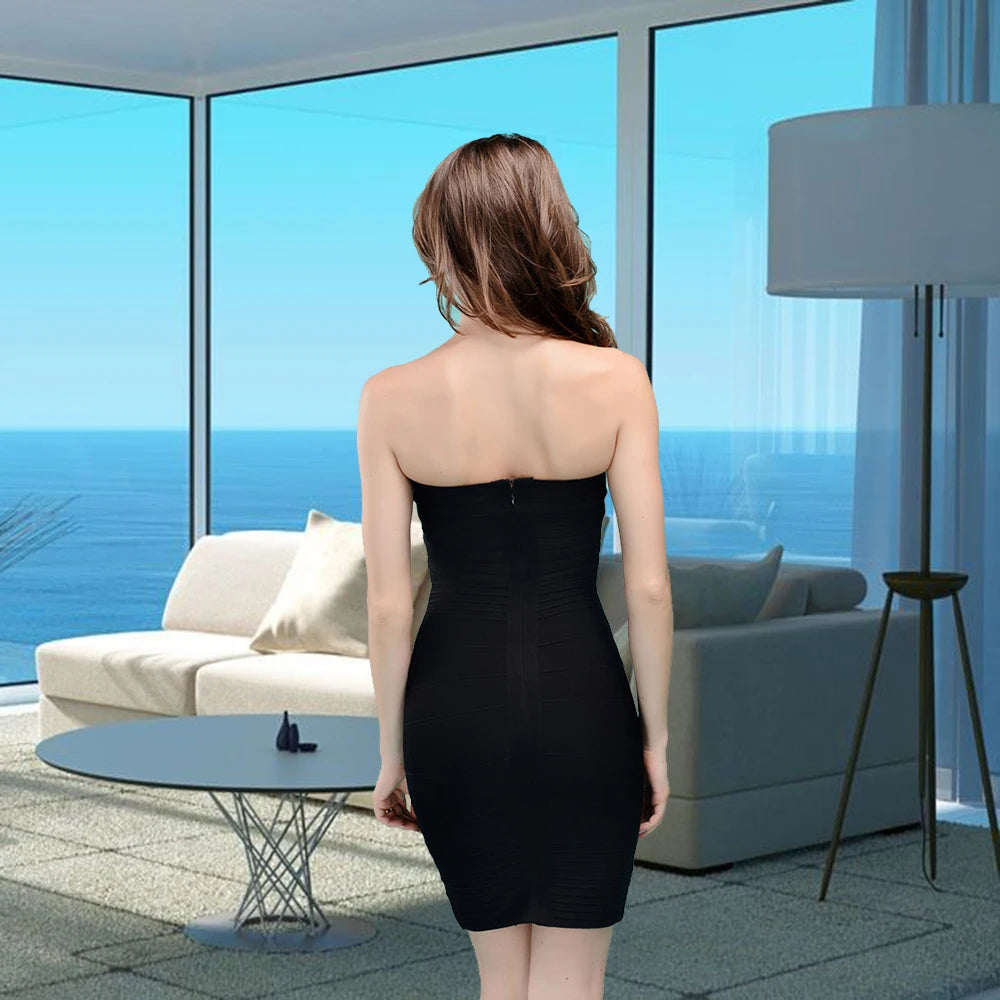 HQBORY 2026 women white Elastic Knitted Celebrity Strapless Mini Sexy Bandage Dress Red sexy party dresses bodycon vestido