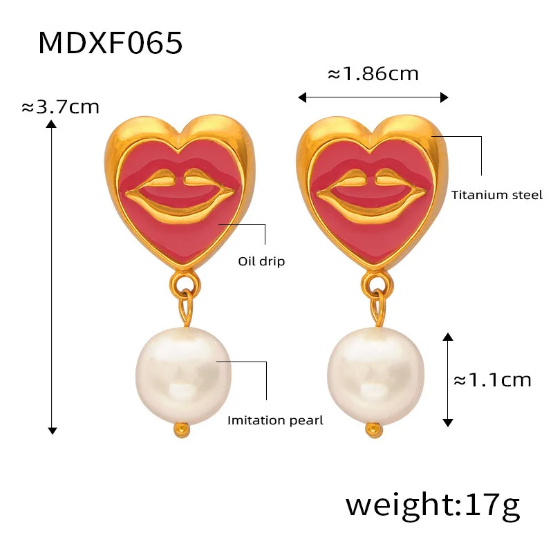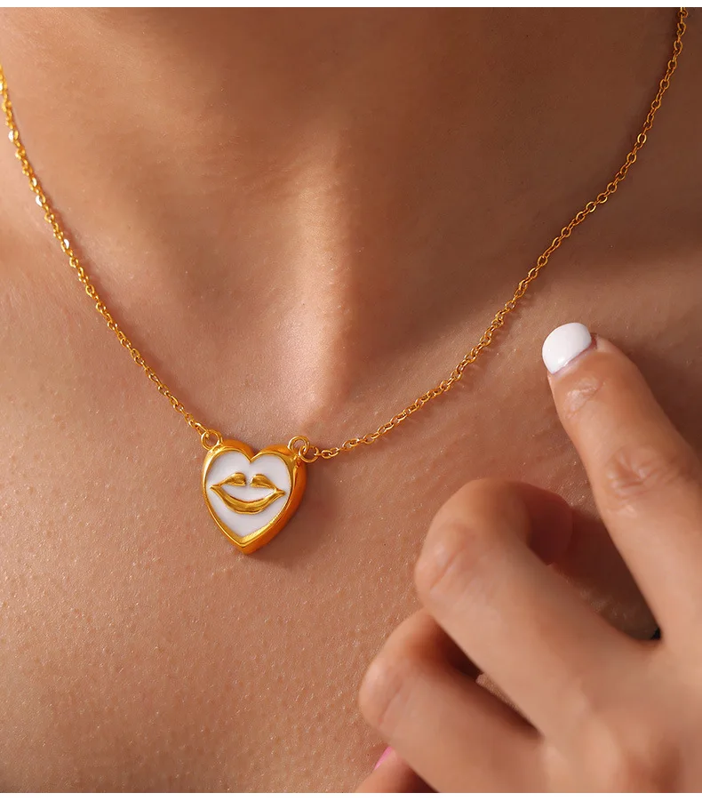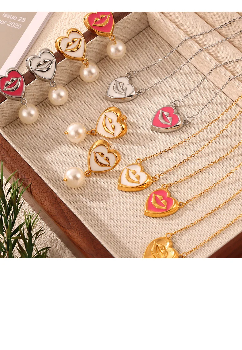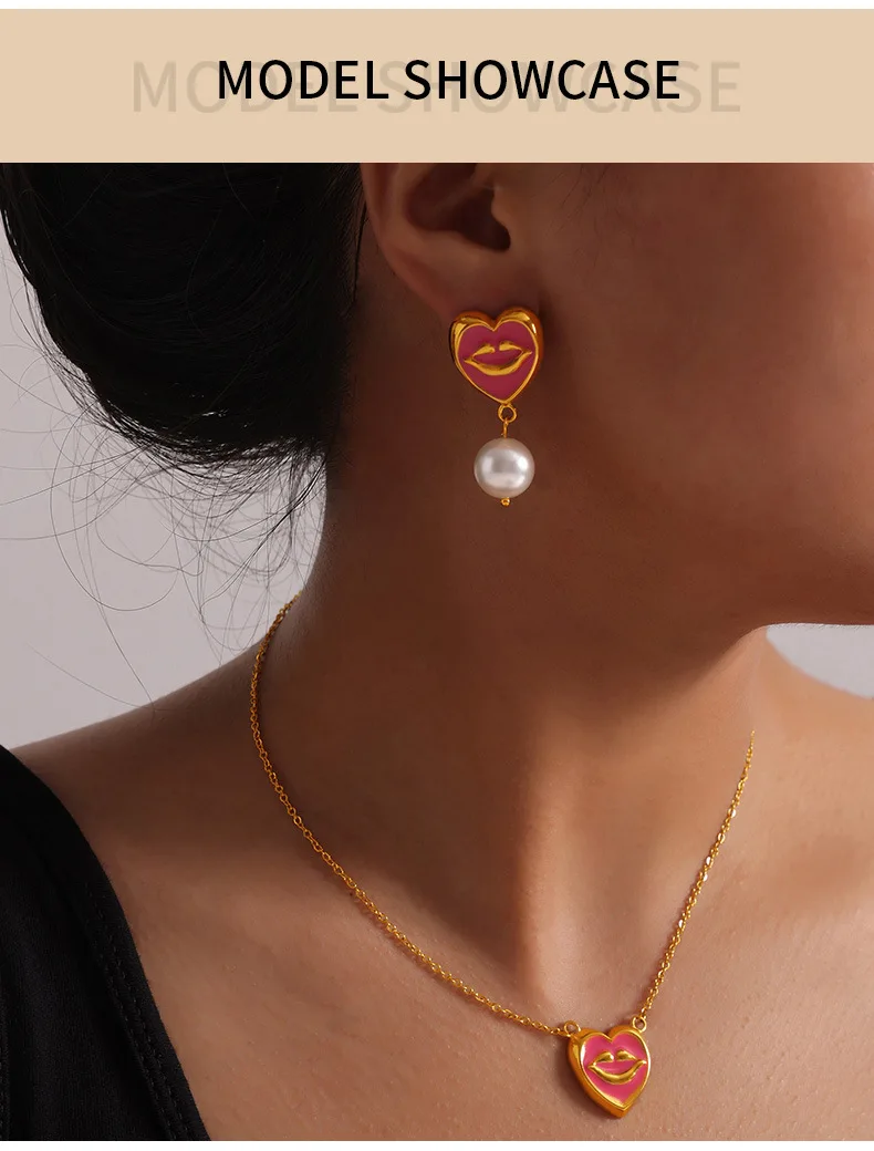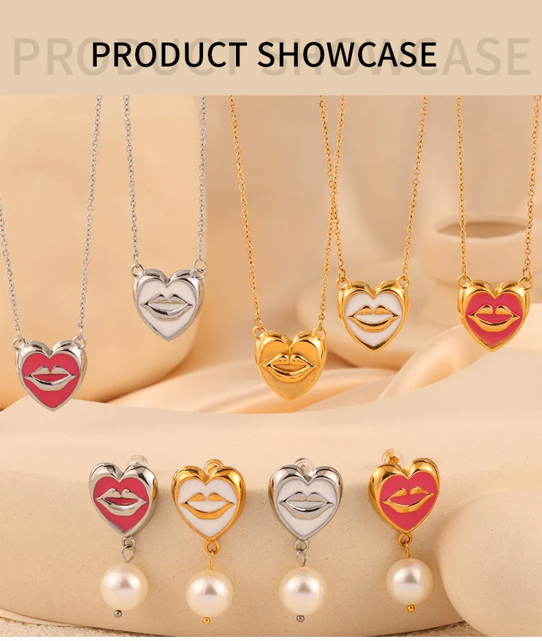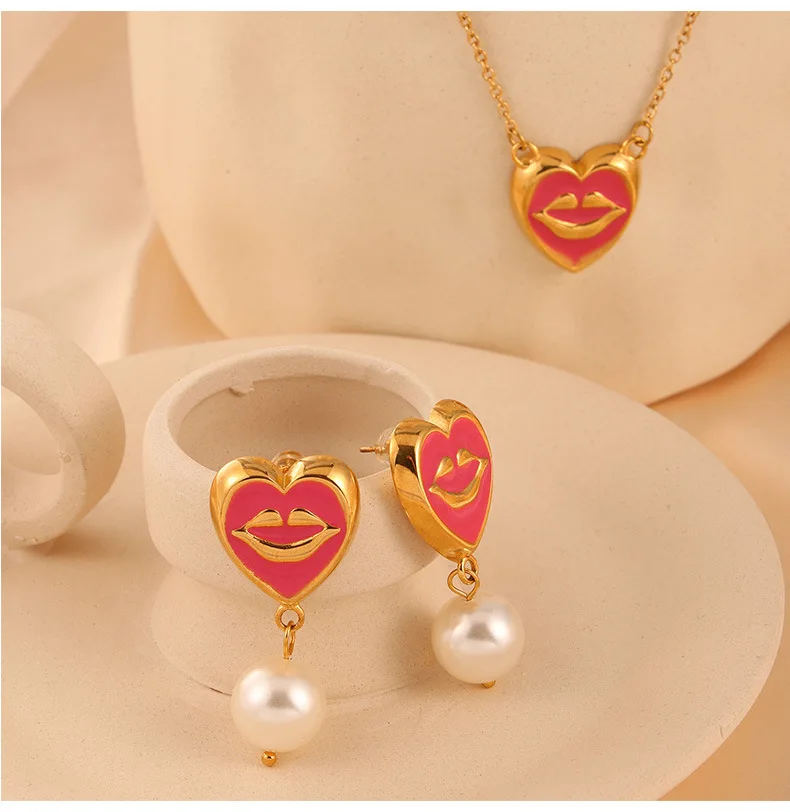 ins Unique Personality Sexy Jewelry Weighted Color Glaze Heart Lip Pendant Titanium Steel Jewelry Set for Women