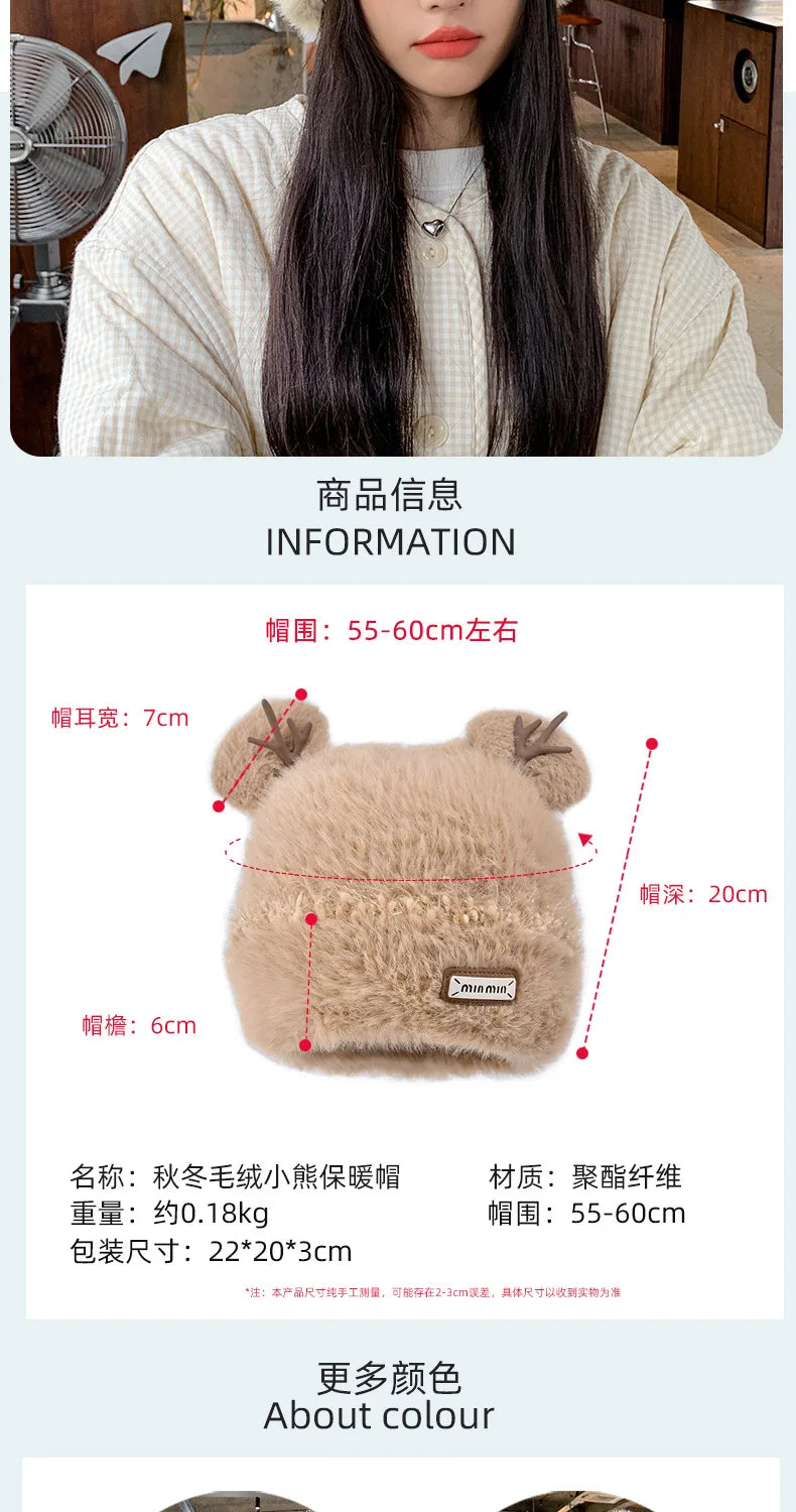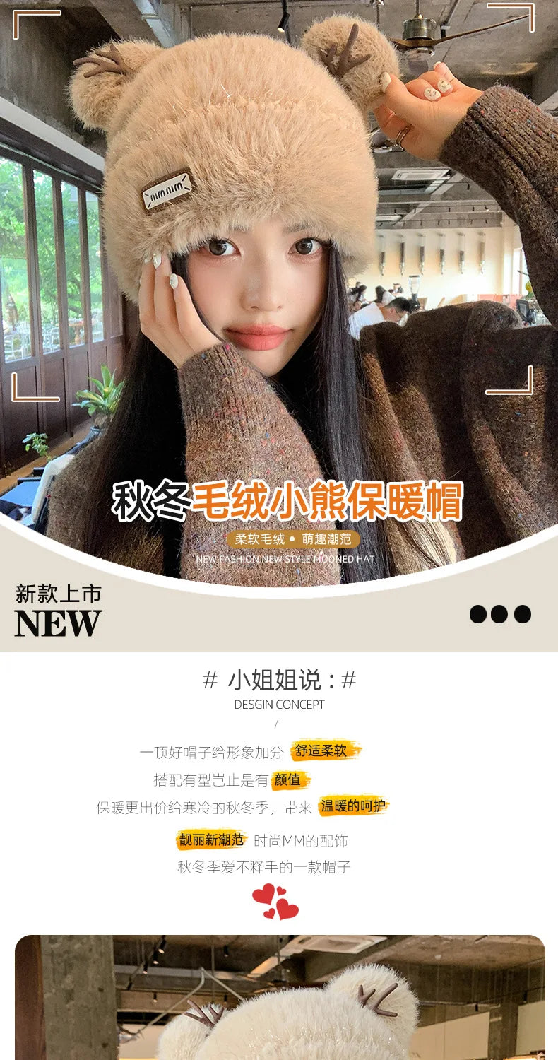 Knitted Hat Beanie Winter Warm Fleece Lined Reindeer Antlers Korean Style Cute Christmas Party Women Girls Thickened Thermal