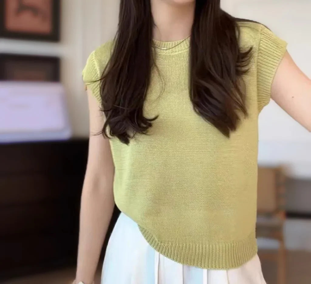 Korean Style Ice Silk Knitted Short Sleeve T-Shirt Women Summer Slim Fit Short Fashionable Top Crew Neck Solid Color