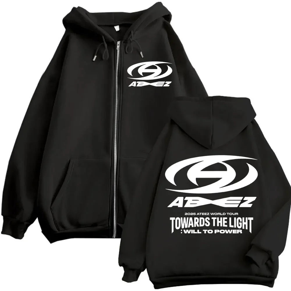 Kpop ATEEZ "FlX ON" Merch Zipper Hoodie Men Women High Quality Fashion Zip Up Jacket Coat Autumn Winter Casual Loose Sweatshirts