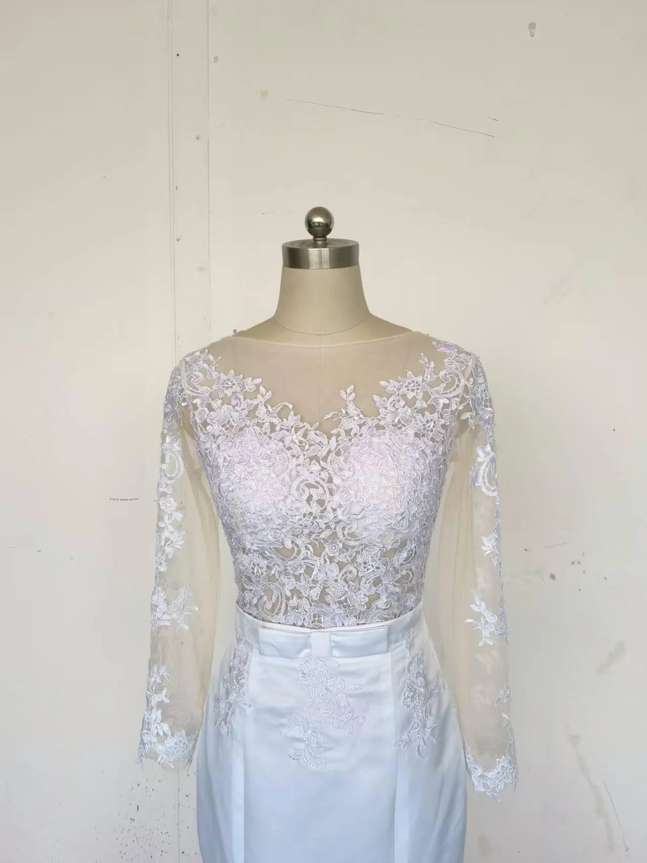 Lace 2 In 1 Mermaid Wedding Dresses Long Sleeves Scoop Neck Detachable Train Puffy Tulle Appliques Bridal Gowns Customized