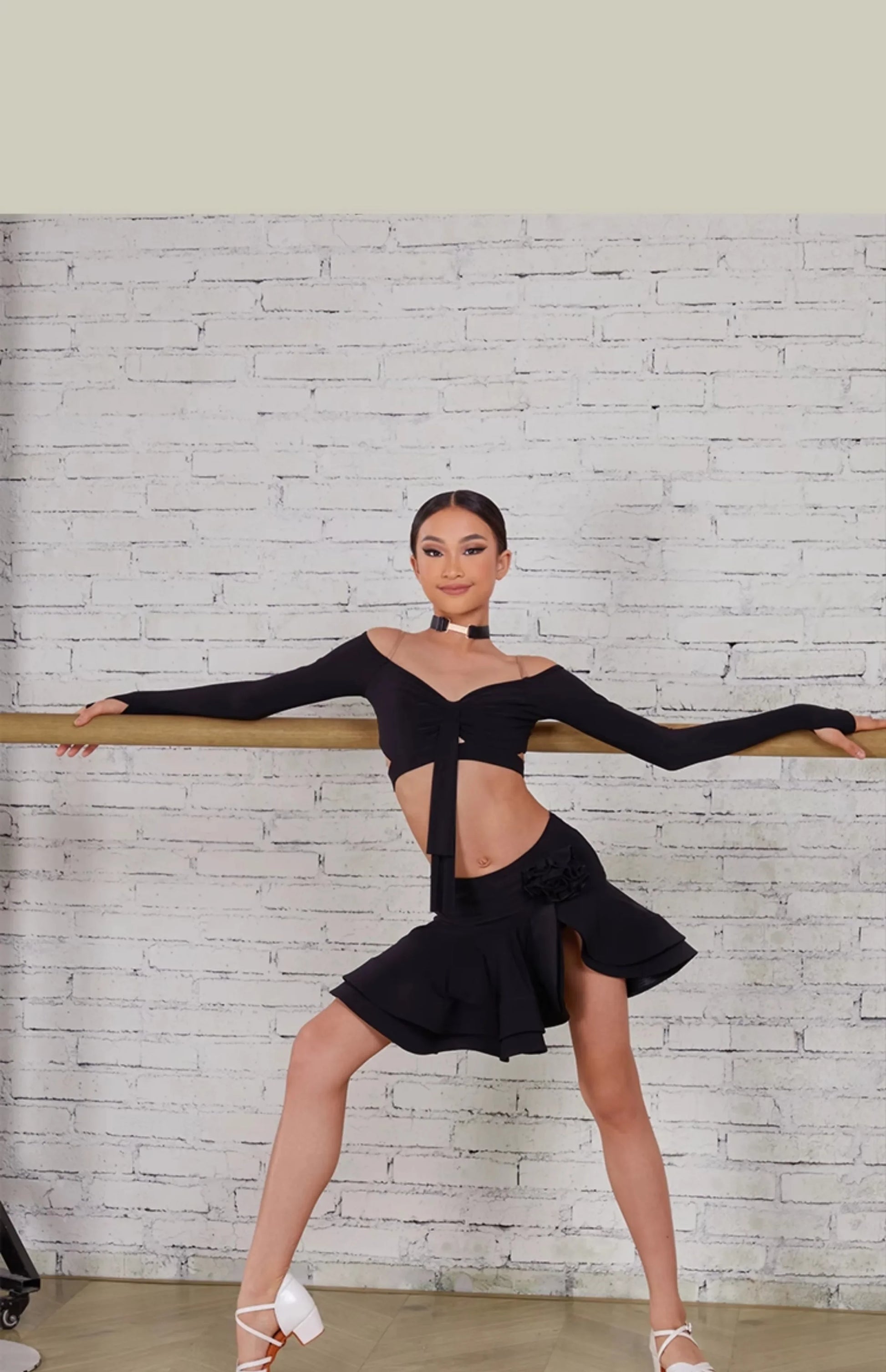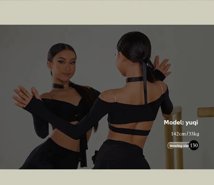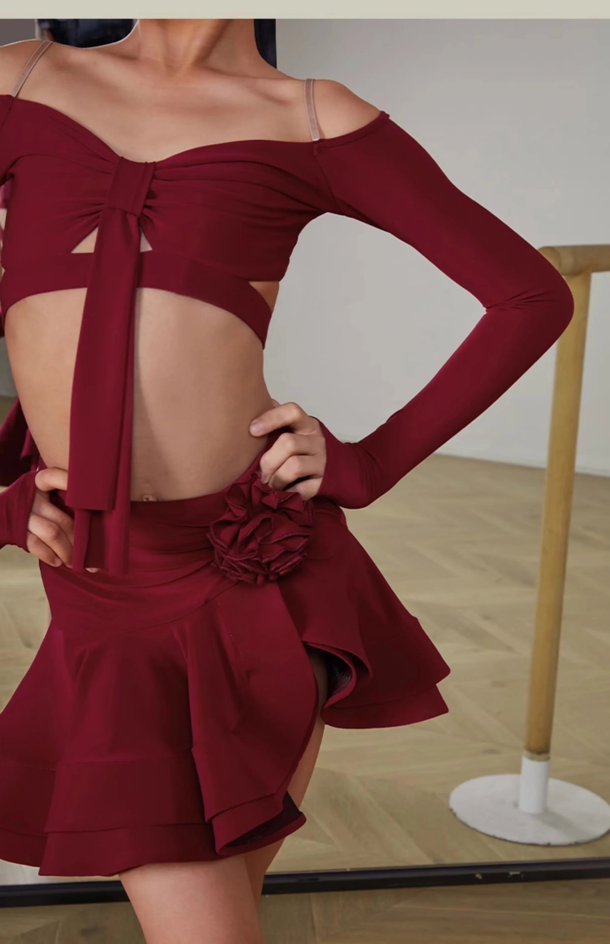 Latin Dance set Clothes Girls Long SLeeves Short Top Skirt Cha cha samba Performance Competition Dress Burgundy Black Dress Kids