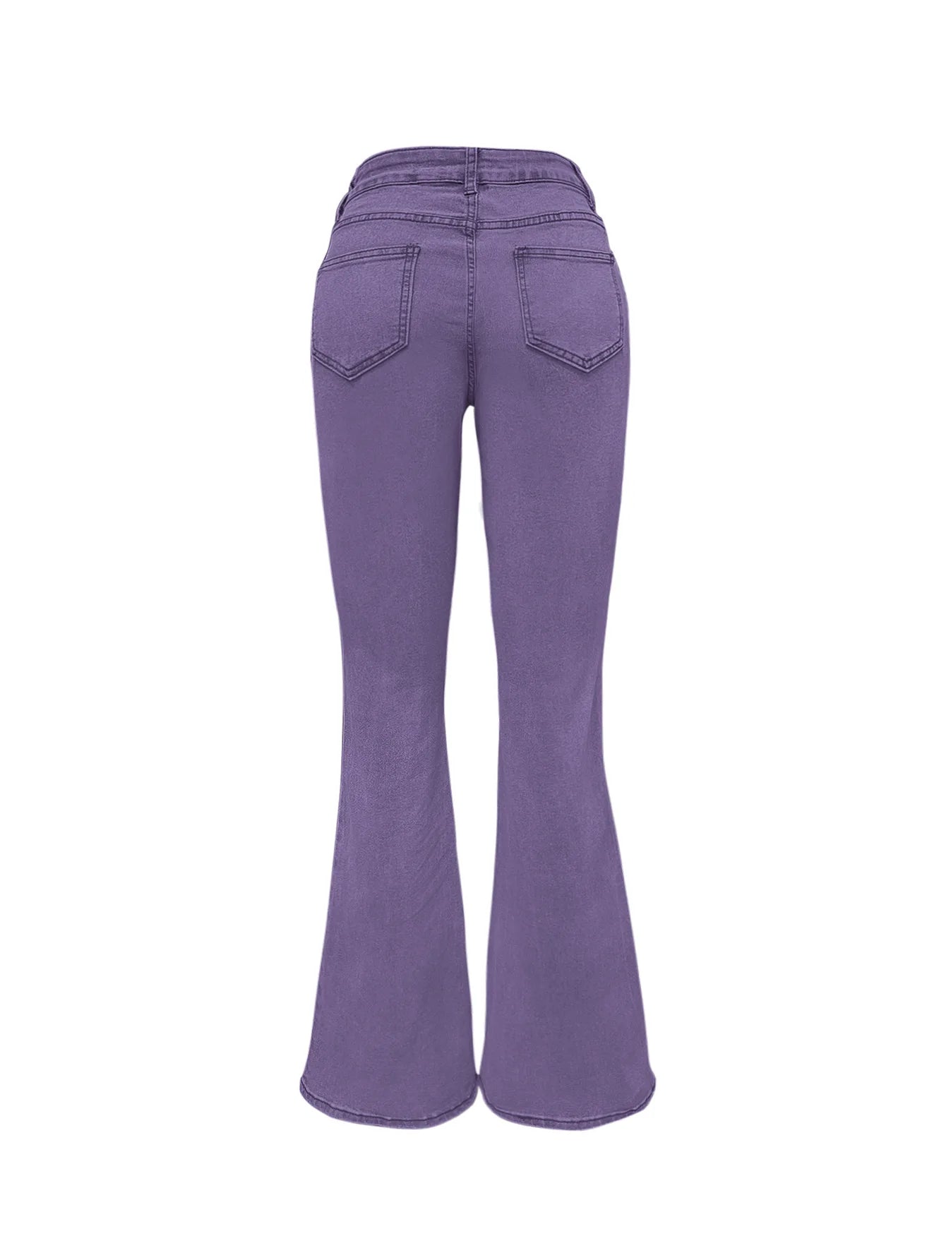 Men Jeans Boot Cut Solid Jean Wide Leg Denim Pant Distressed Washed Full Ankle Length Pockets Zipper Fly High Waist Basics