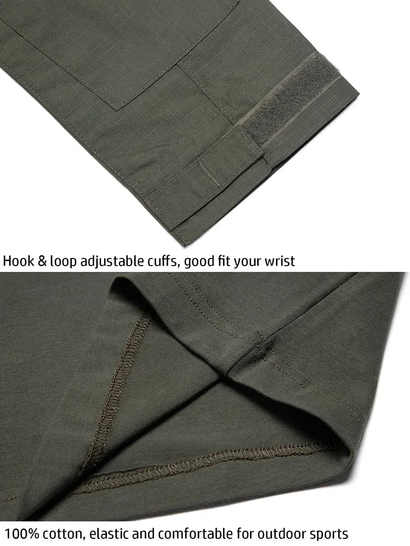 Men's Outdoor Tactical Shirts Long Sleeve Outfit Combat Shirt 1/4 Zipper Ripstop Tops Workwear pullover Camo Airsoft T-Shirts