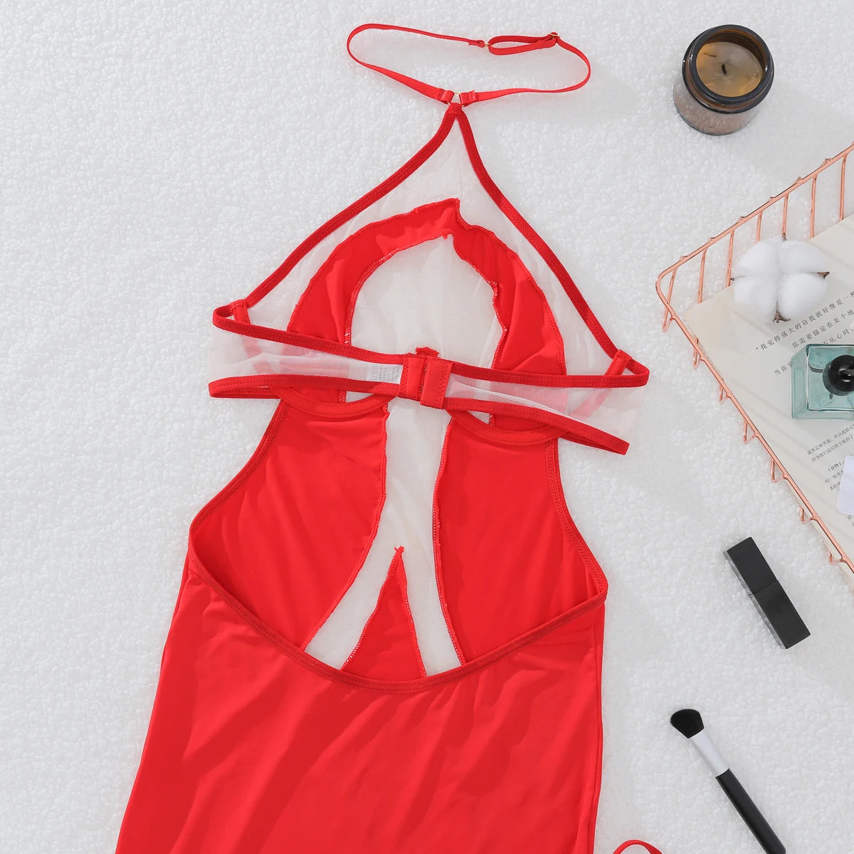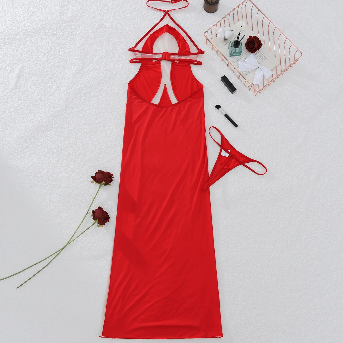 MUZISKAT 2026 Women's Sexy Hanging Neck Strap Fabric Splicing Dress Strapless Bareback Slimming Long Party Evening Dress