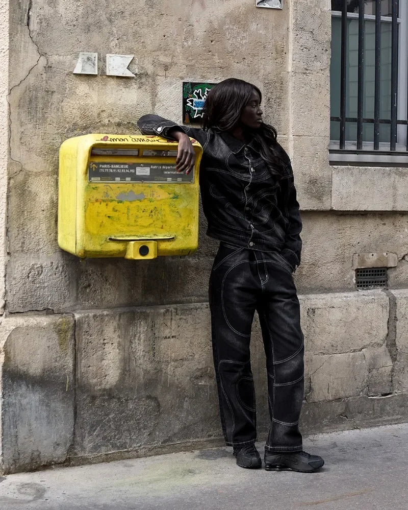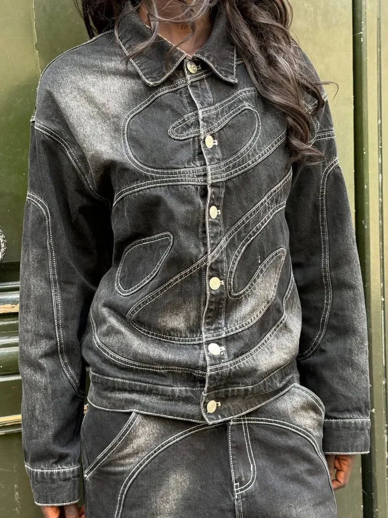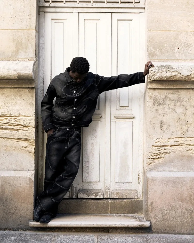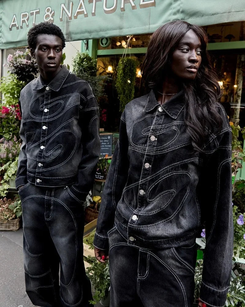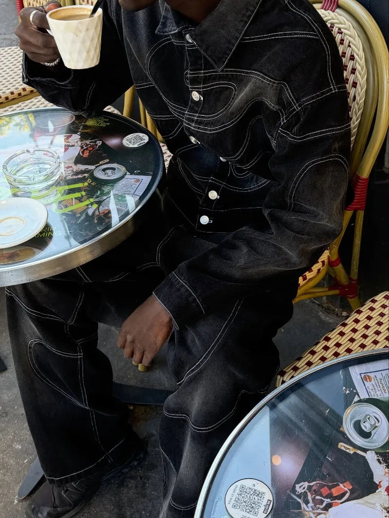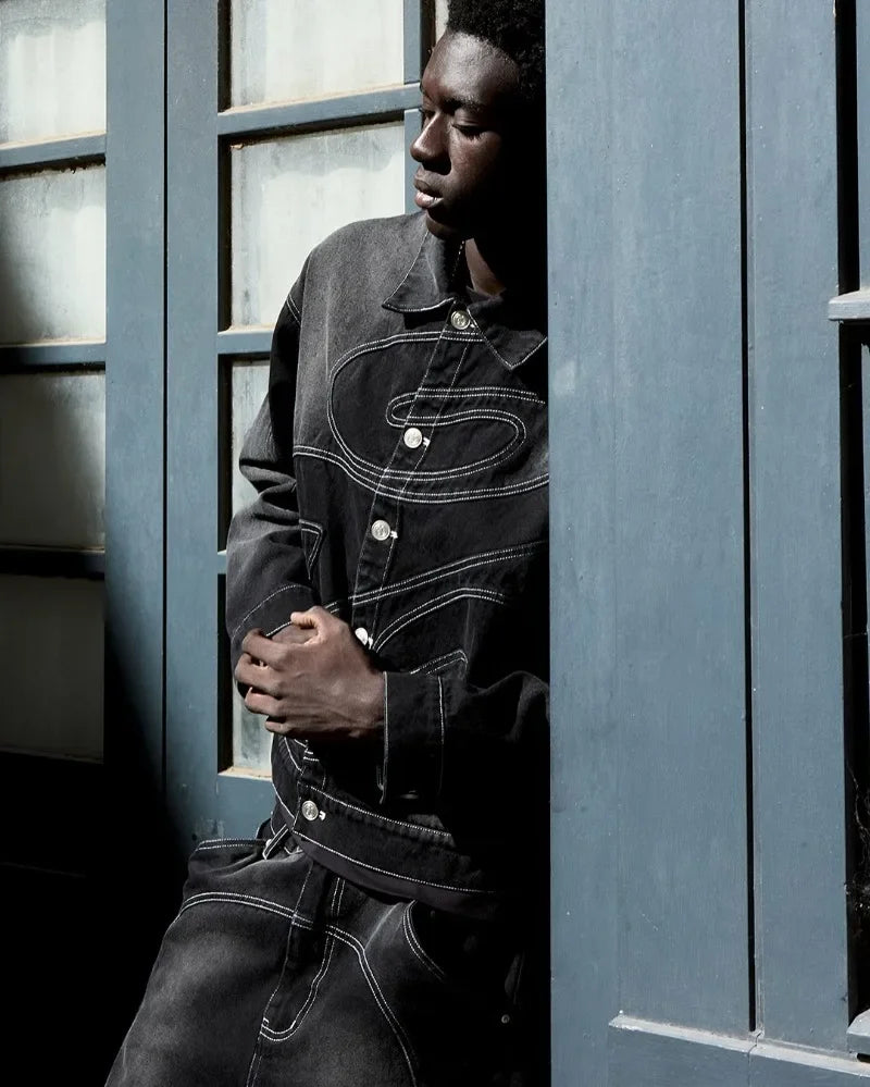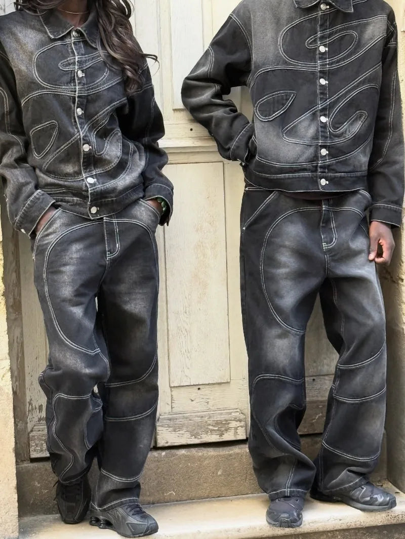 New Retro Striped Embroidery Fashion Loose Men Suit Street Hip Hop Harajuku Y2K Casual Oversized Single Breasted Jacket