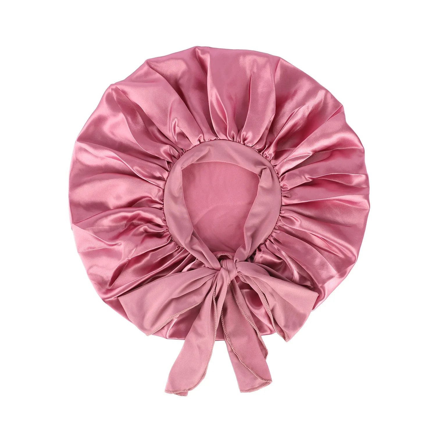 New Women Large Satin Bonnet Silky Night Sleeping Cap with Stretchy Tie Band Shower Cap Curly Braid Hair Head Cover Turban