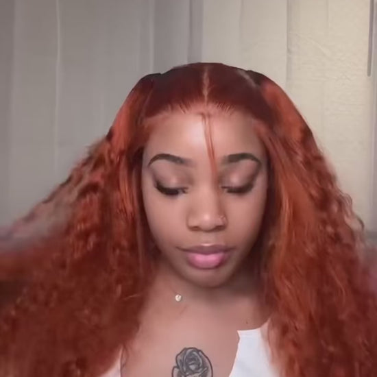 Orange colored Water wave 13x6 hd lace frontal human hair wig Preplucked deep wave 30 inch ginger lace front curly wigs on sale