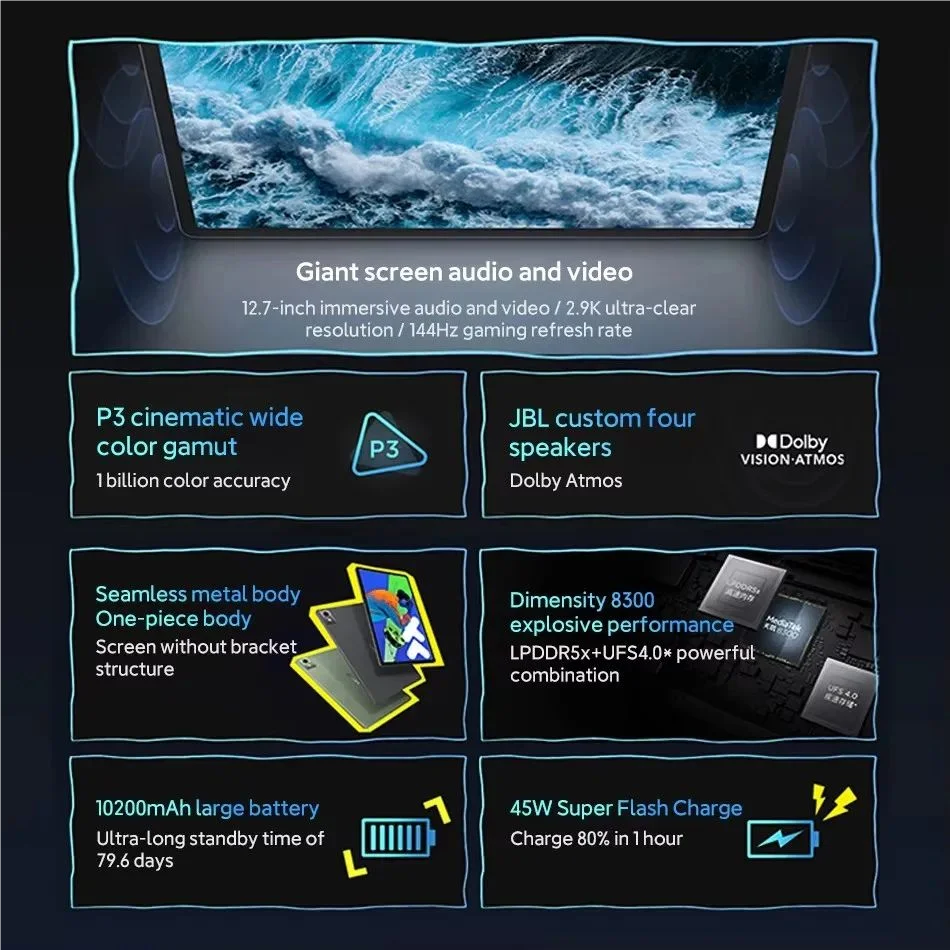 Original CN Version Lenovo Xiaoxin Pad Pro 12.7 2026 Pads MTK Dimensity 8300 144Hz 128GB 256GB 10200mAh 45W Charging GPS Tablet