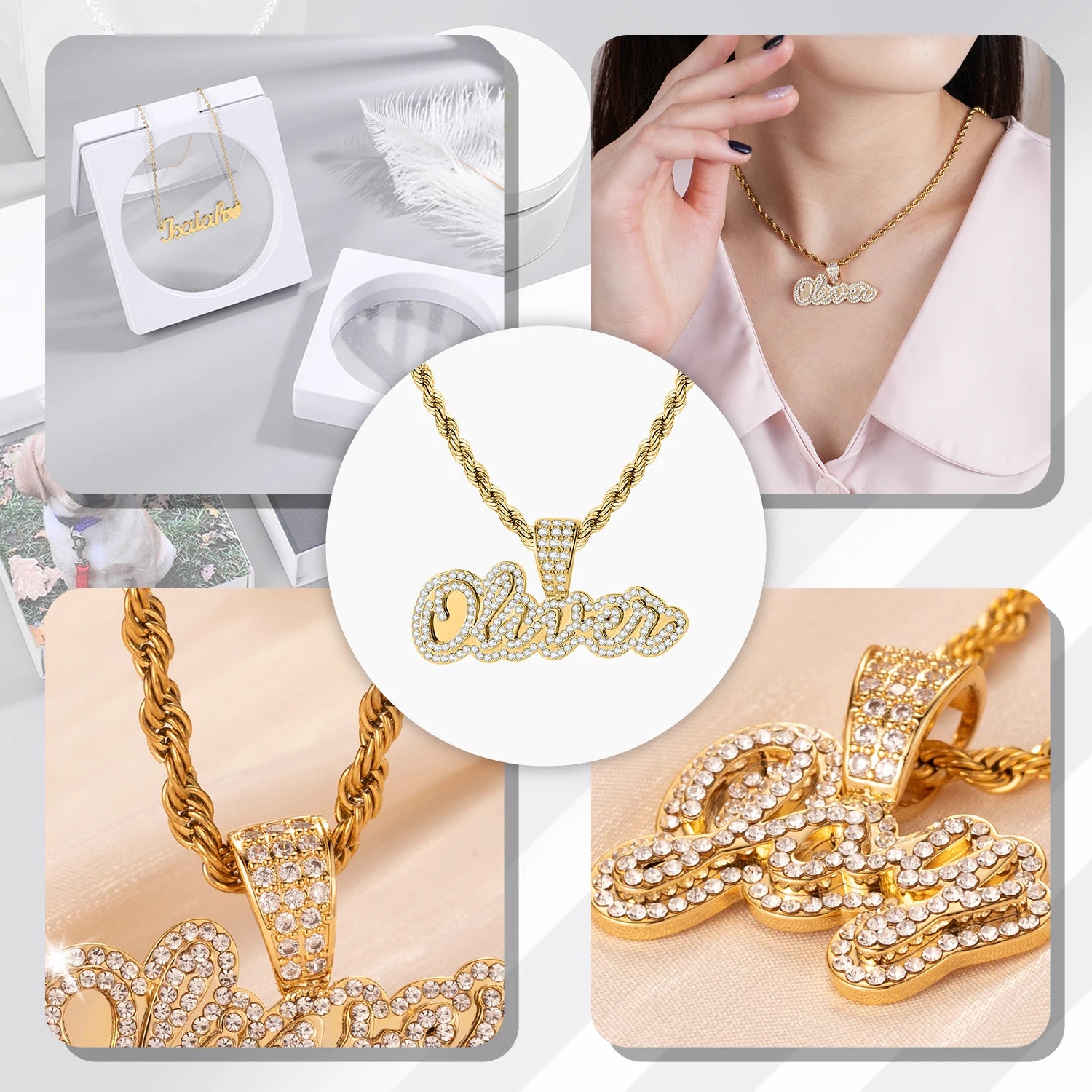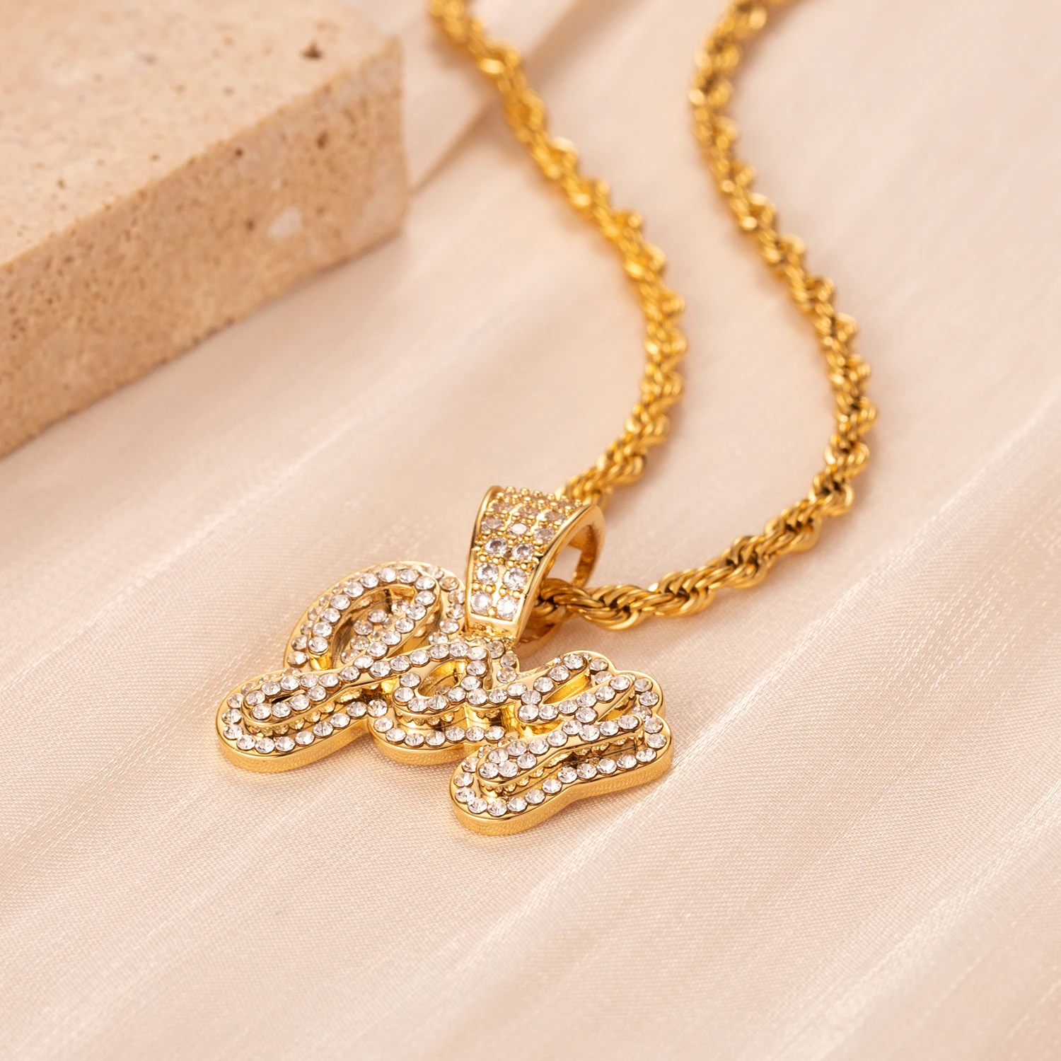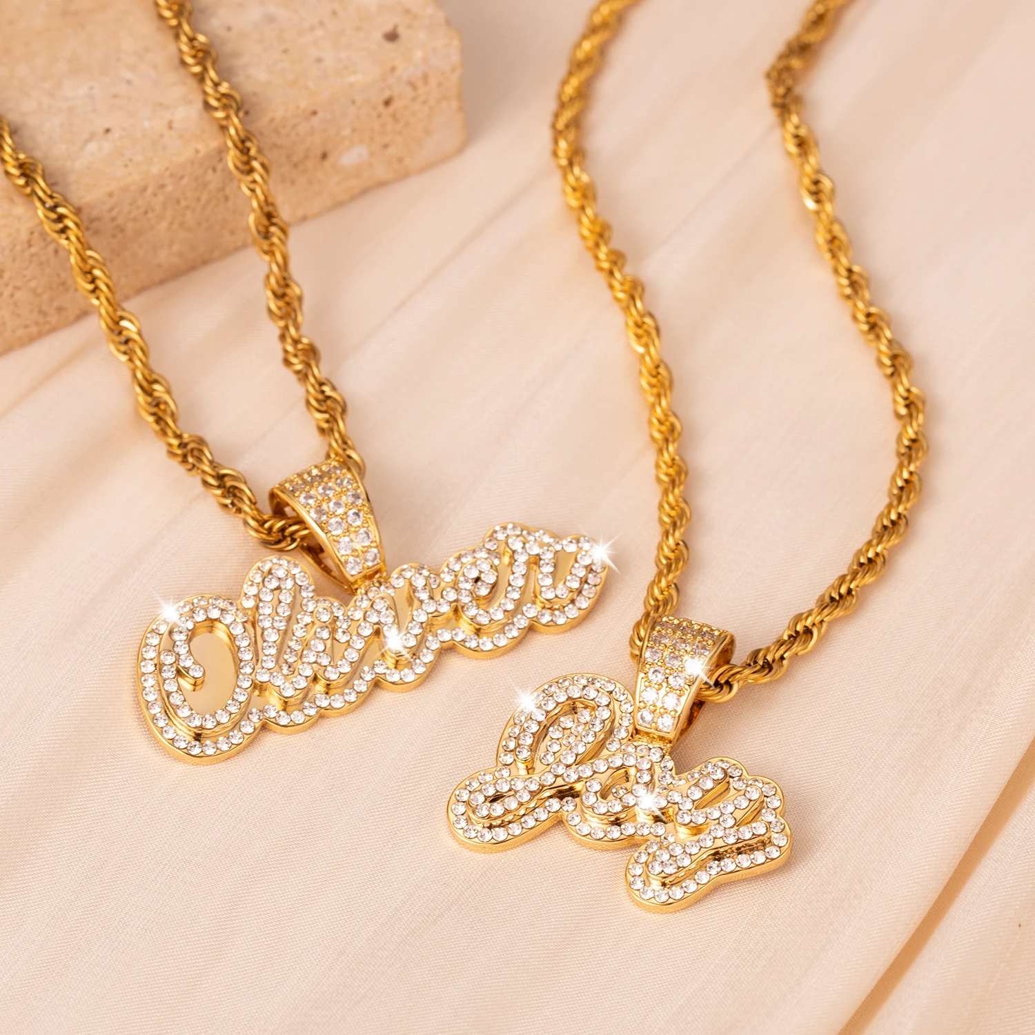 Personalized Iced Out Necklace With Name For Women Custom Double Crystal Name Necklaces Stainless Steel Chain Pendant Jewelry