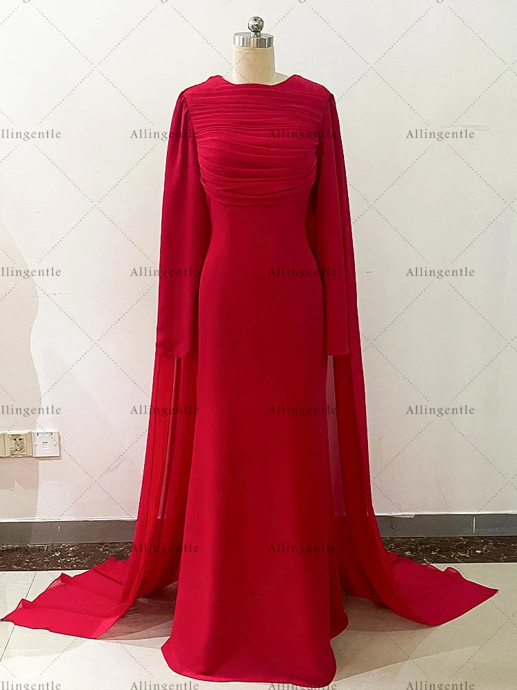 Pink Long Sleeves Mermaid Prom Dresses robes de soirée A-line Pleats Evening Dress Floor-Length Wedding Guest Dress Customized