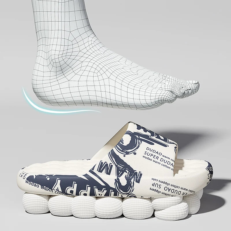 Plus Size 48 Graffiti Bear Printing Men Slippers Sole EVA Indoor Open Toe Flip Flops Beach Slides Flat Sandals Slide