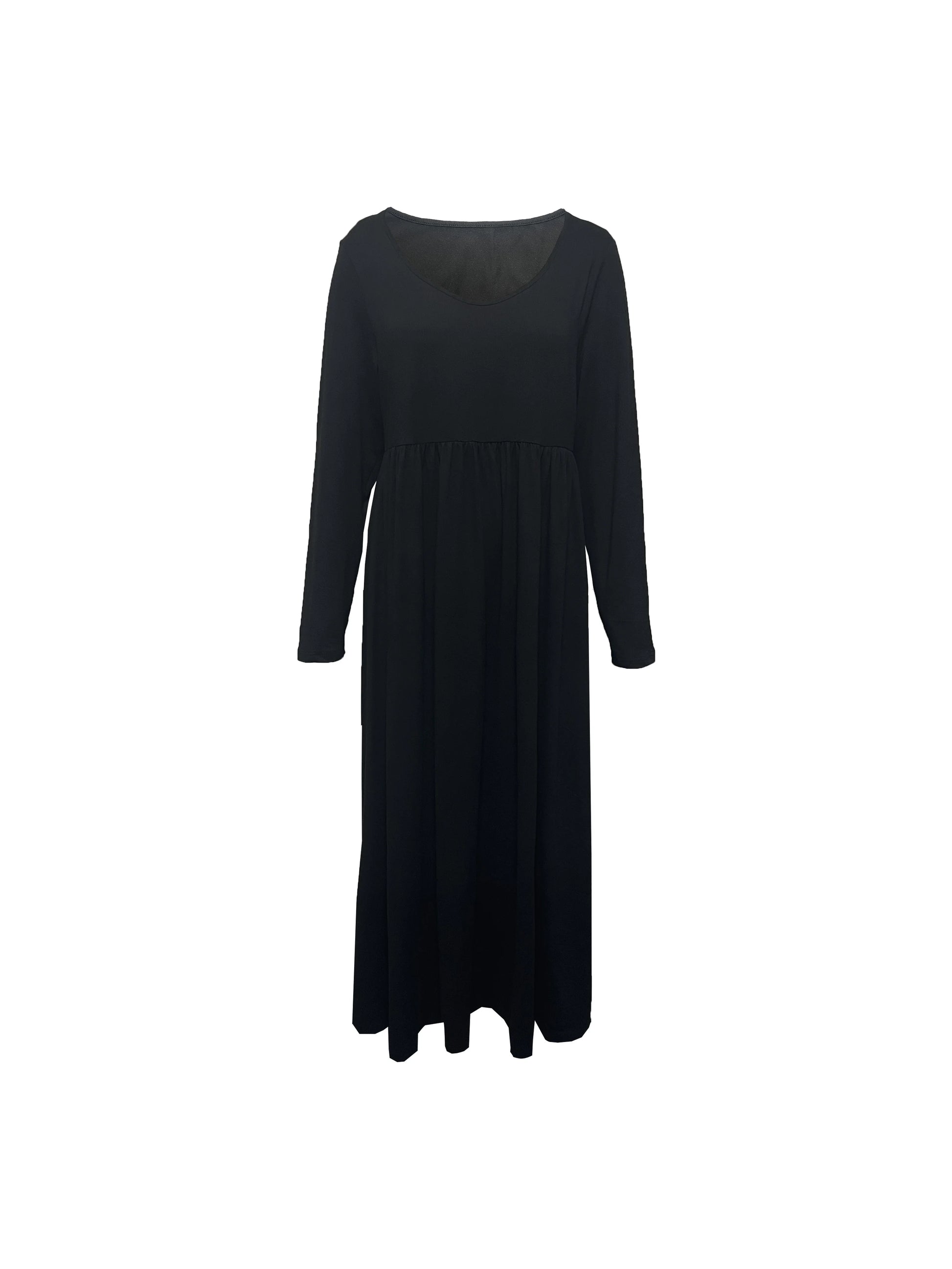 Plus Size Europe and the United States Fall and Winter Fashion Casual Solid Color Crew Neck Long Sleeve Dress