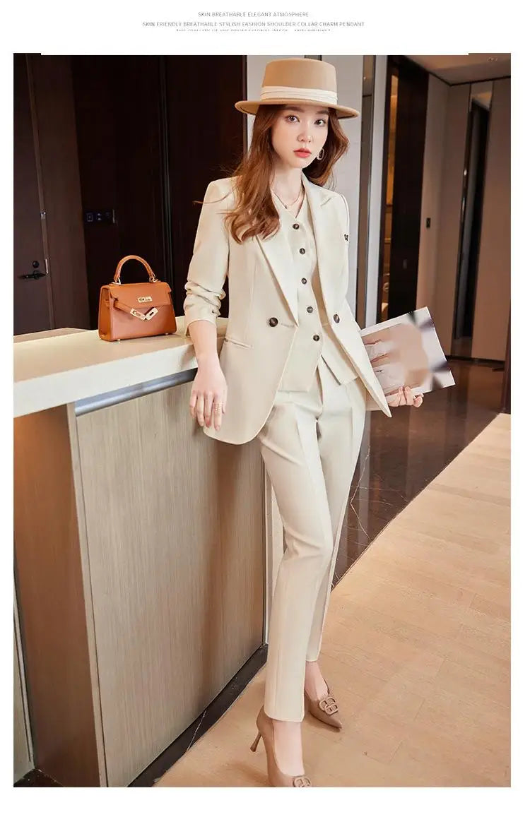 S-4XL Blazer New Style Temperament Vest Three Piece Suit Goddess Style Professional Formal Suit Jacket+vest+pants