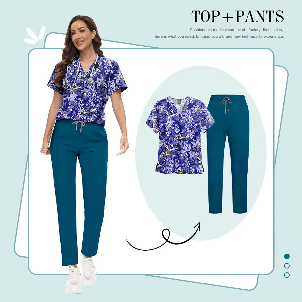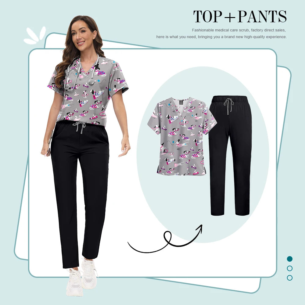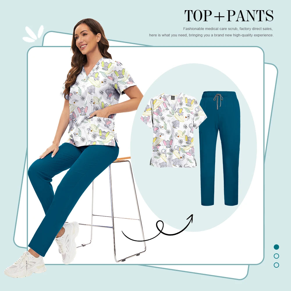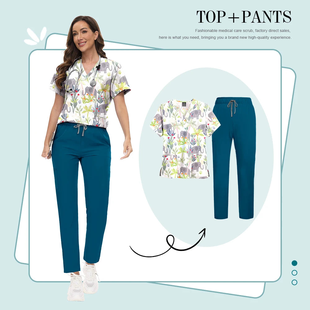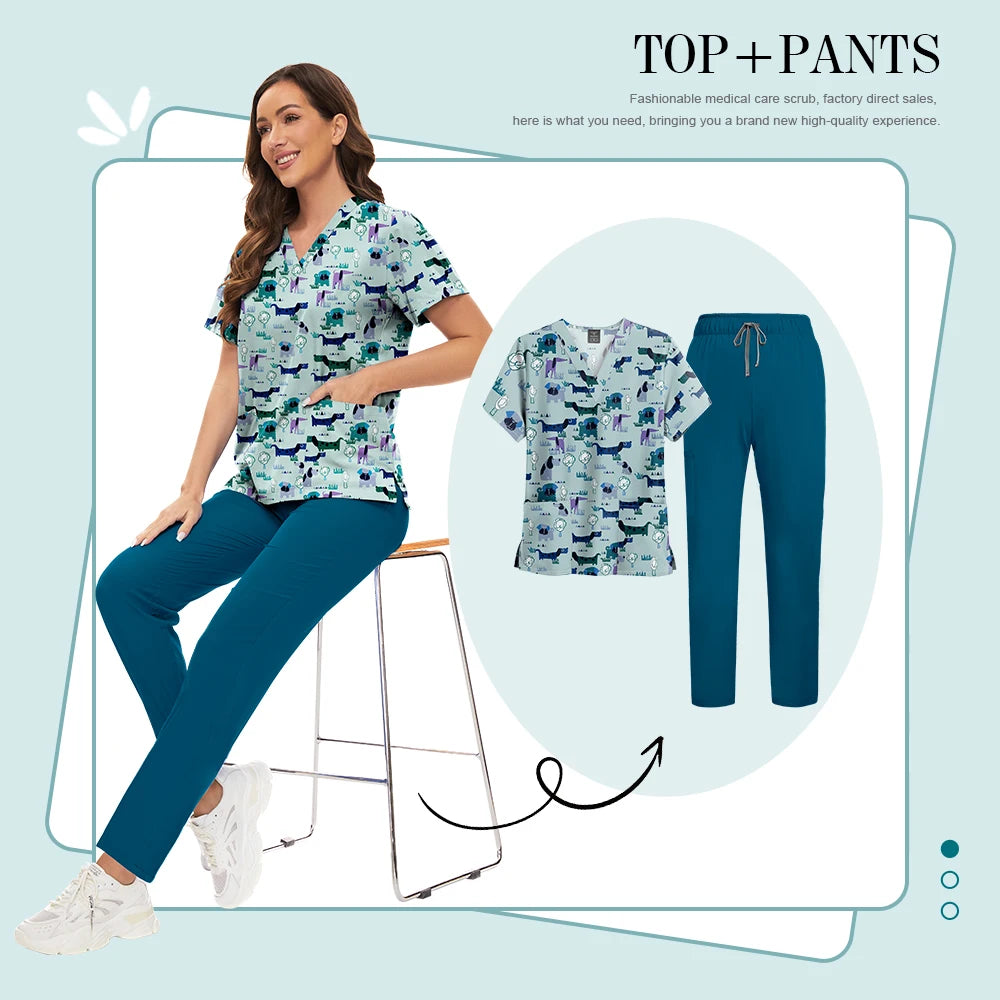 Scrubs Uniforms Sets High-quality Medical Scrub Multicolor Animal Printed Women Scrub Tops Medical Scrubs Uniform Nurse Lab Wear