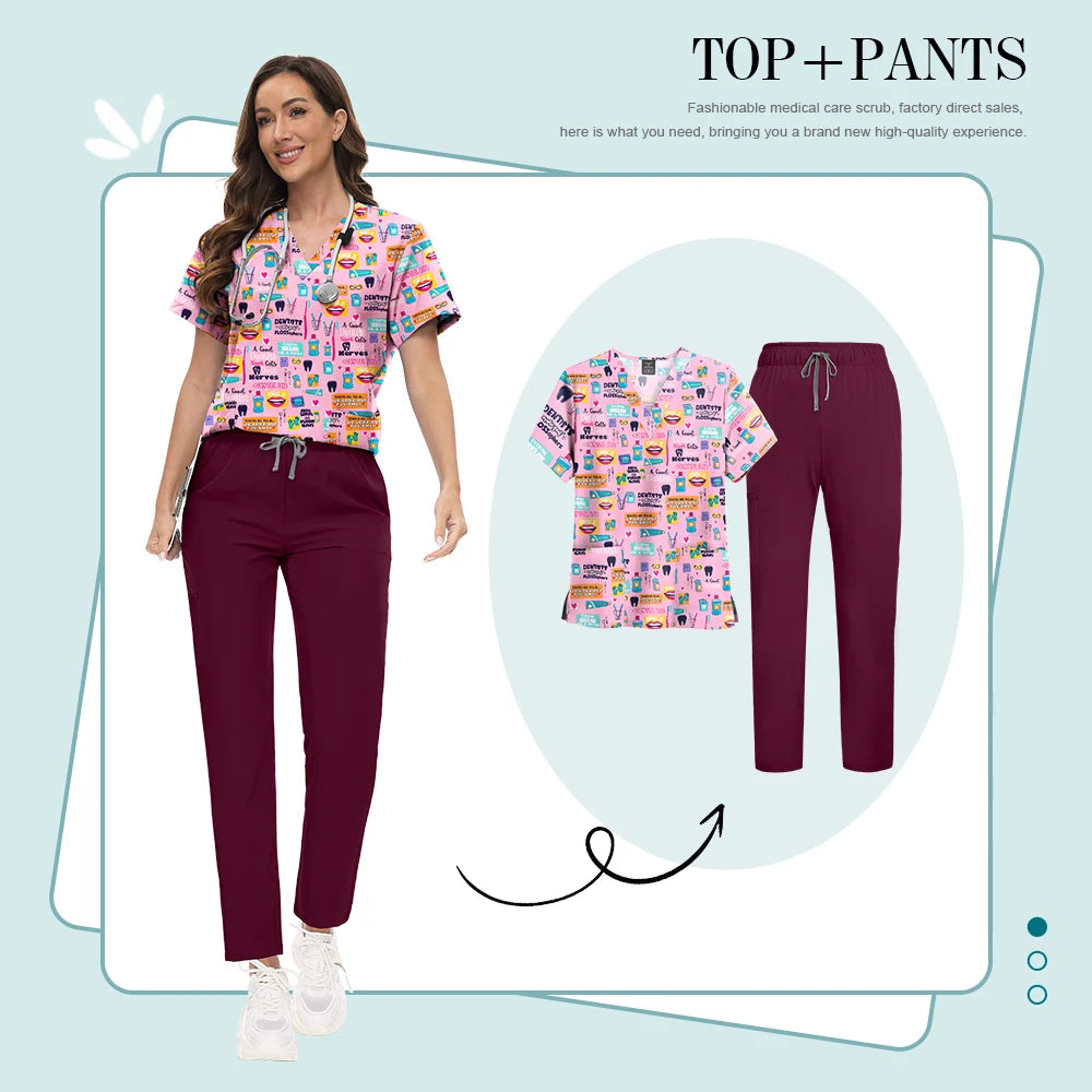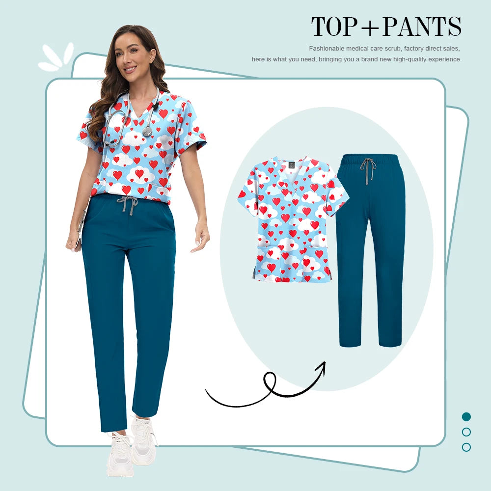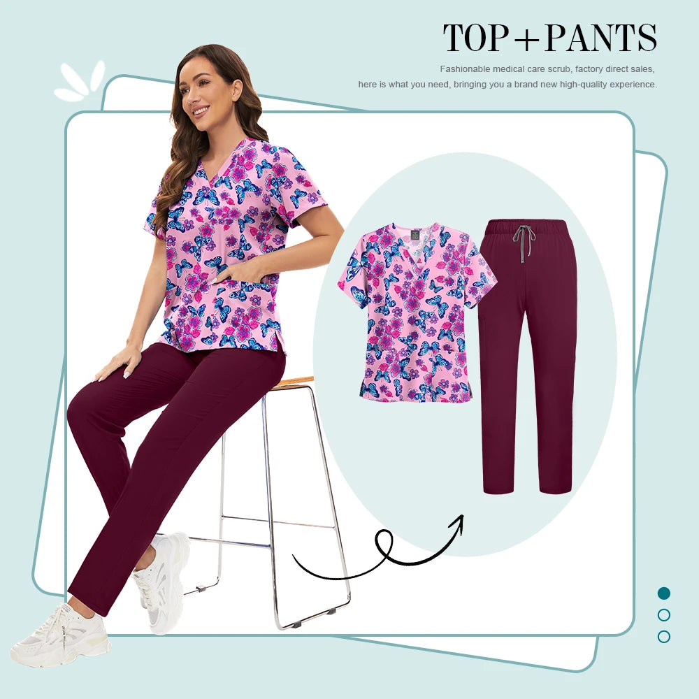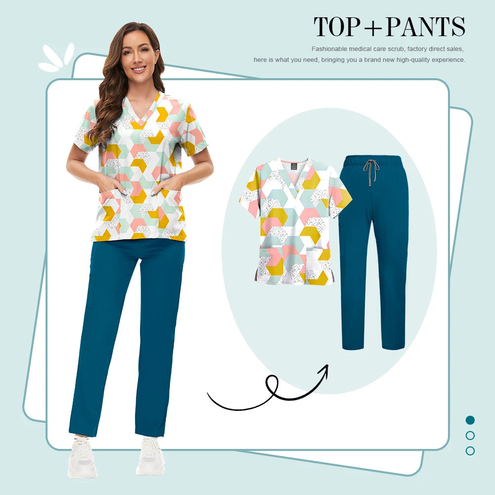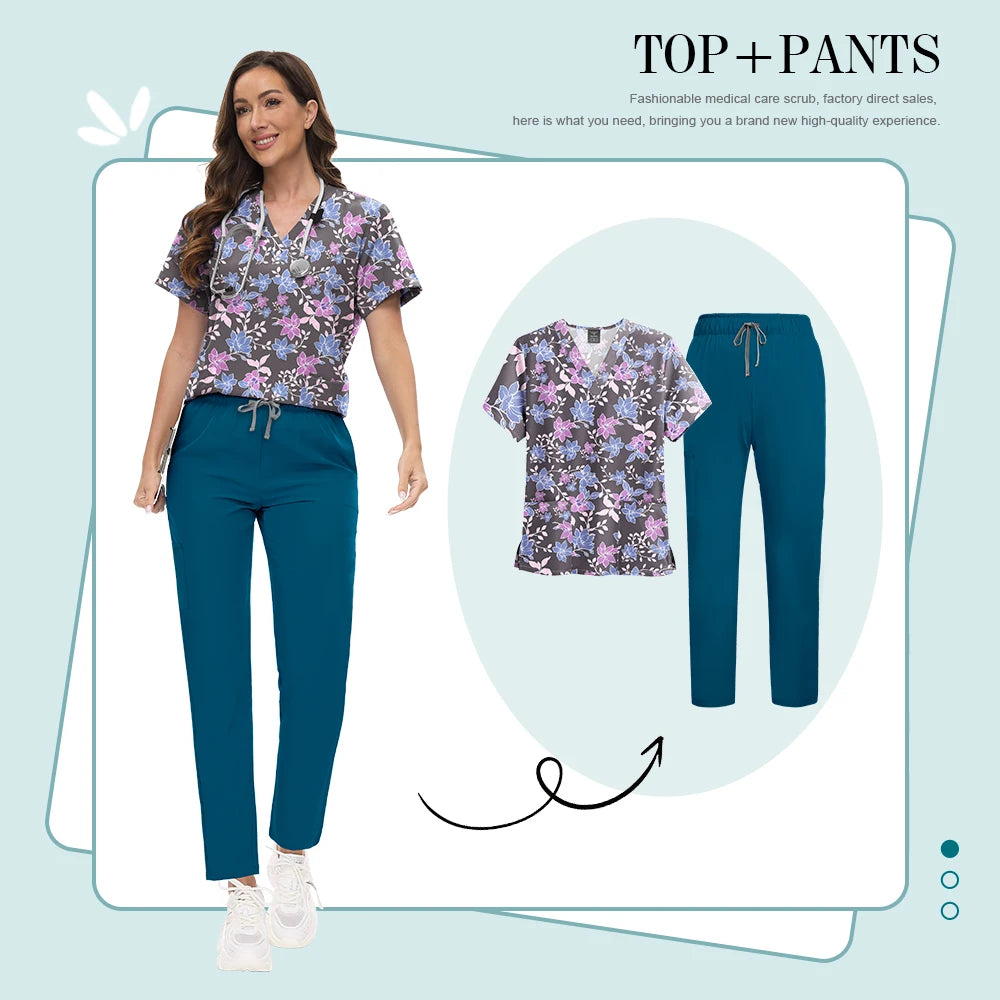 Scrubs Uniforms Sets High-quality Medical Scrub Multicolor Animal Printed Women Scrub Tops Medical Scrubs Uniform Nurse Lab Wear
