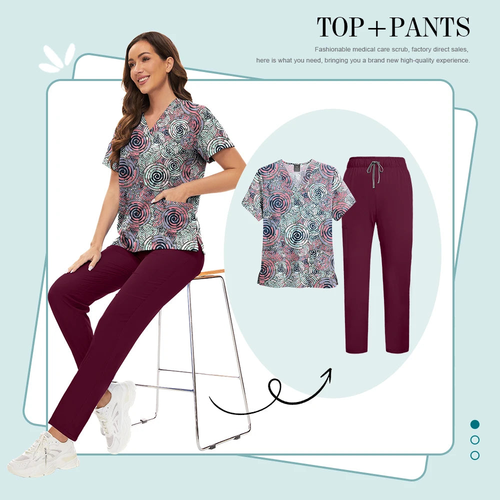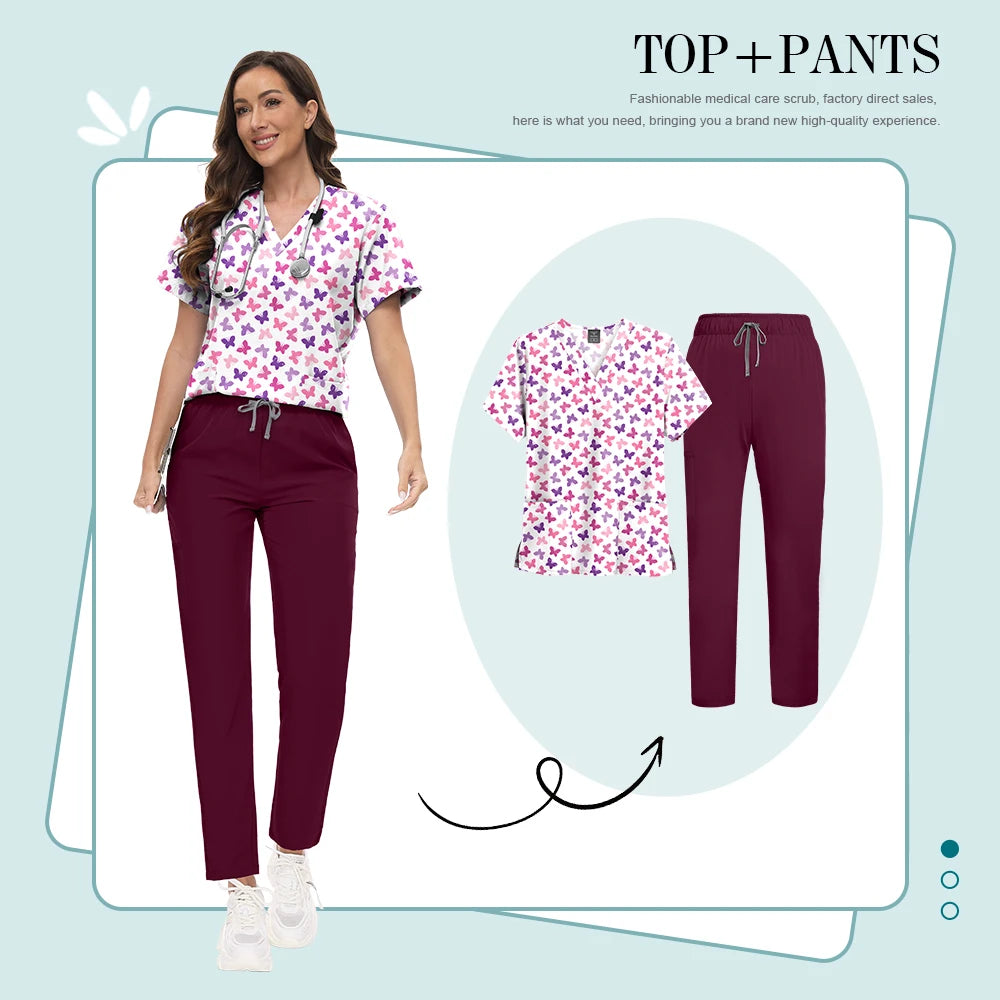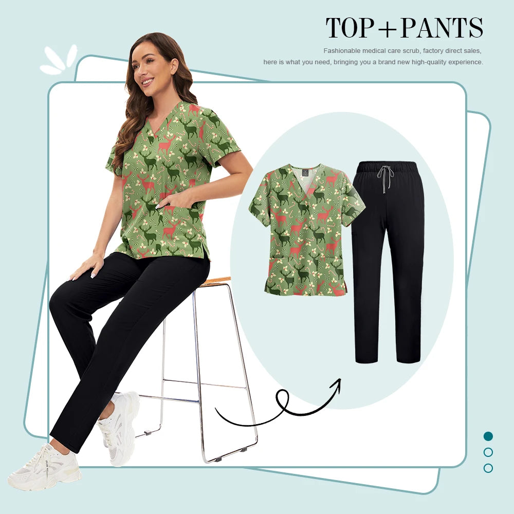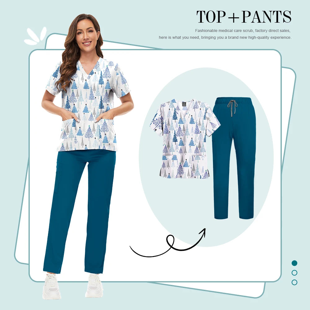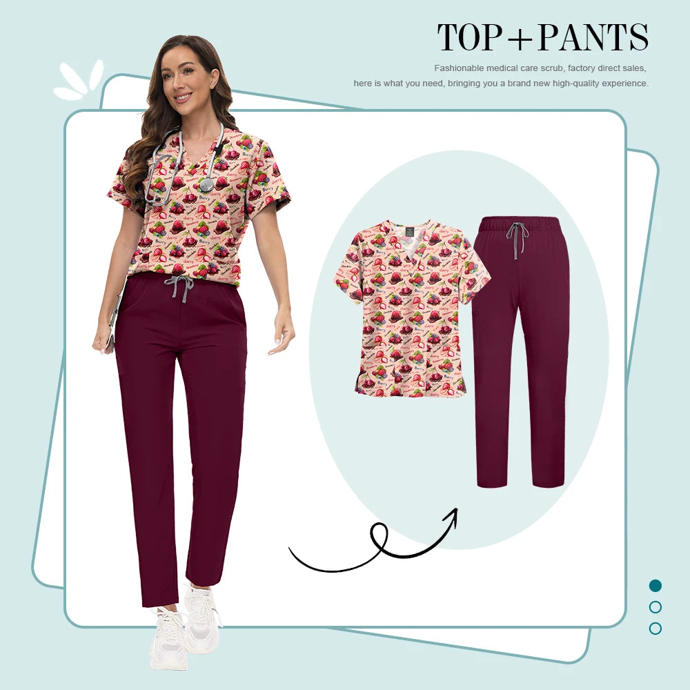Scrubs Uniforms Sets High-quality Medical Scrub Multicolor Animal Printed Women Scrub Tops Medical Scrubs Uniform Nurse Lab Wear