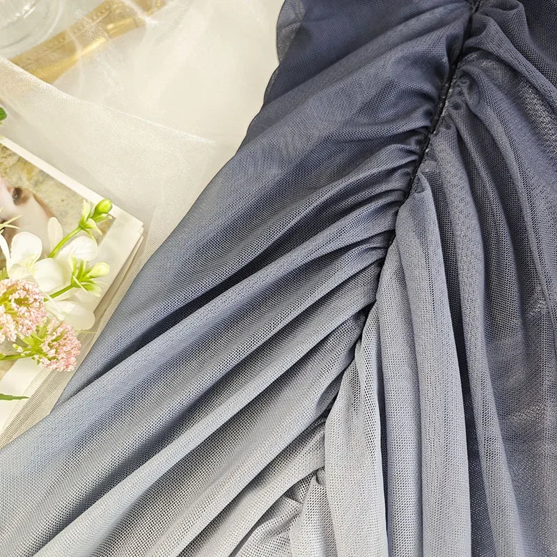 Sexy Gradient Color Folded Women's Wrap Chest Dress Fashionable Summer Dress Long Ankle Length Empire Waistline Sleeveless