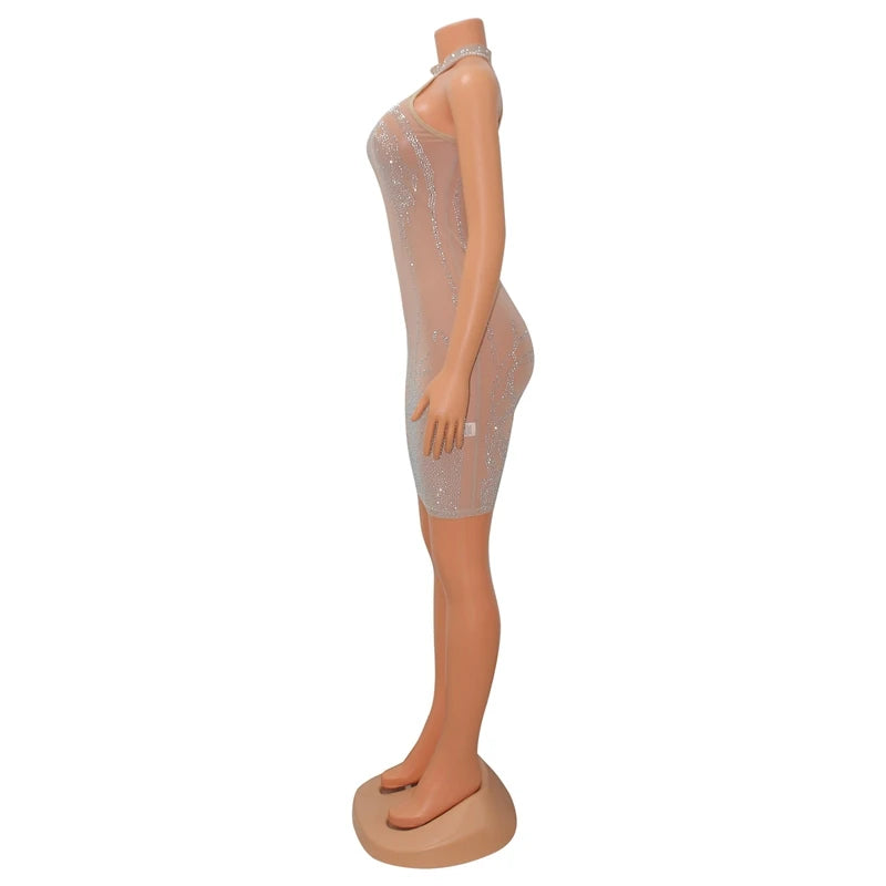 Sexy Party Dress for Women Mesh Sheer See Through Party Club Night Mini Bodycon Dress Luxury Rhinestone Sparkly Birthday Dress