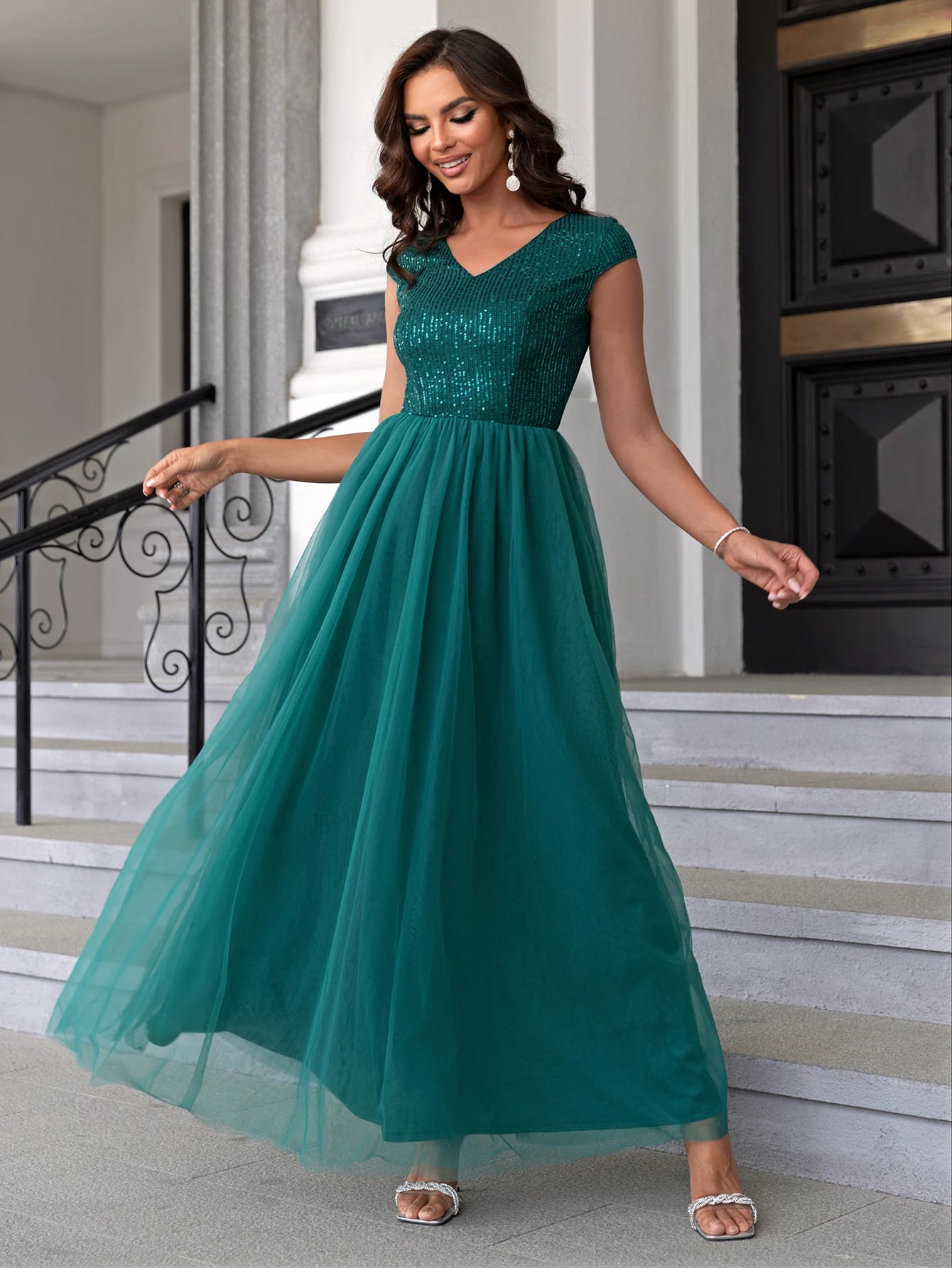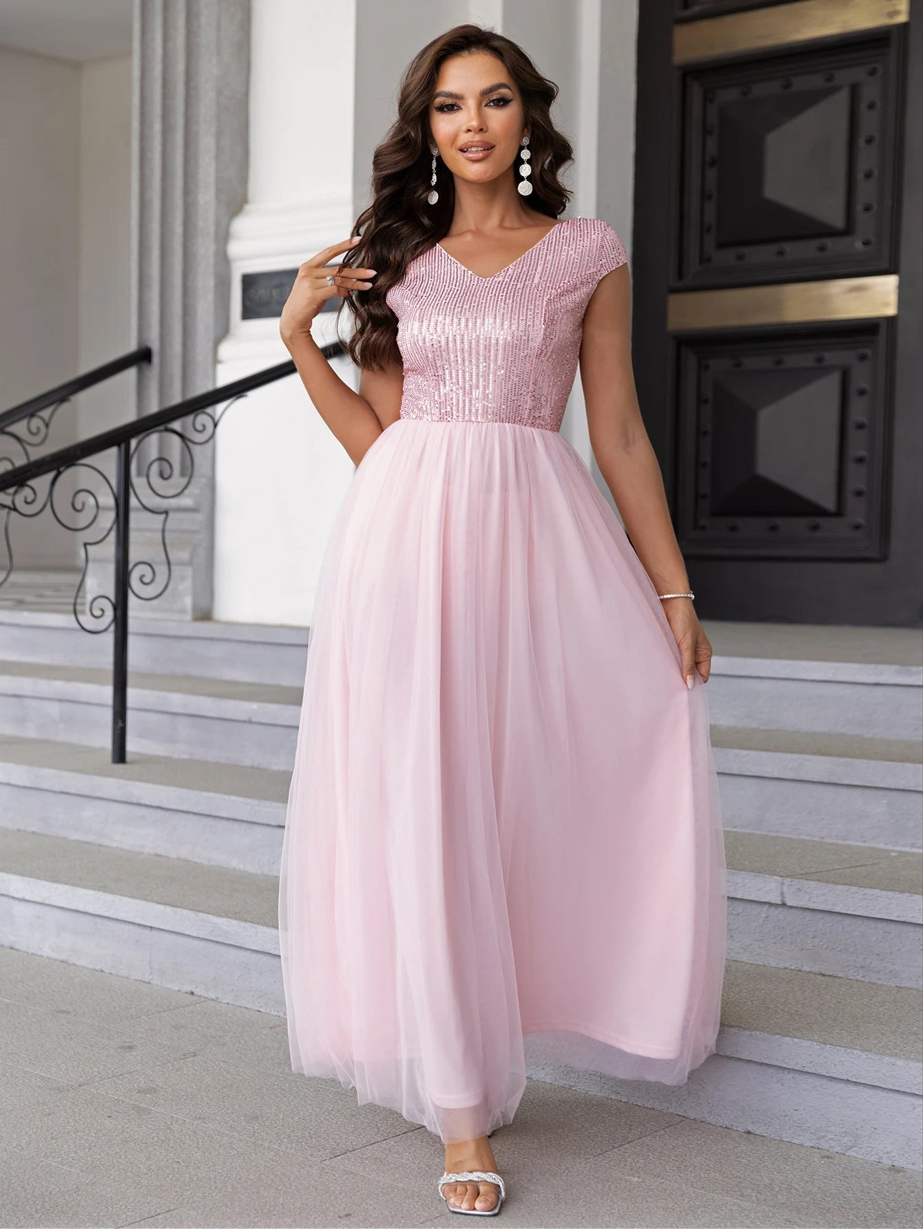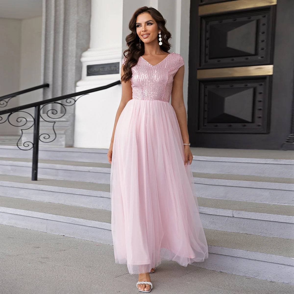 Sexy Prom Sequin Mesh Evening Party Dress Backless Bodycon Elegant Long Dress A-Line Wedding maxi Dress Gown