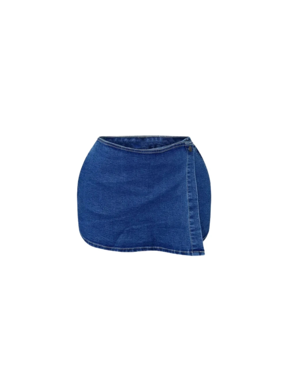 Sexy Women's Denim Suit Strapless Top And Slim-Fit Shorts Outfits Solid Color Comfortable Summer Ladies Two-Piece Set
