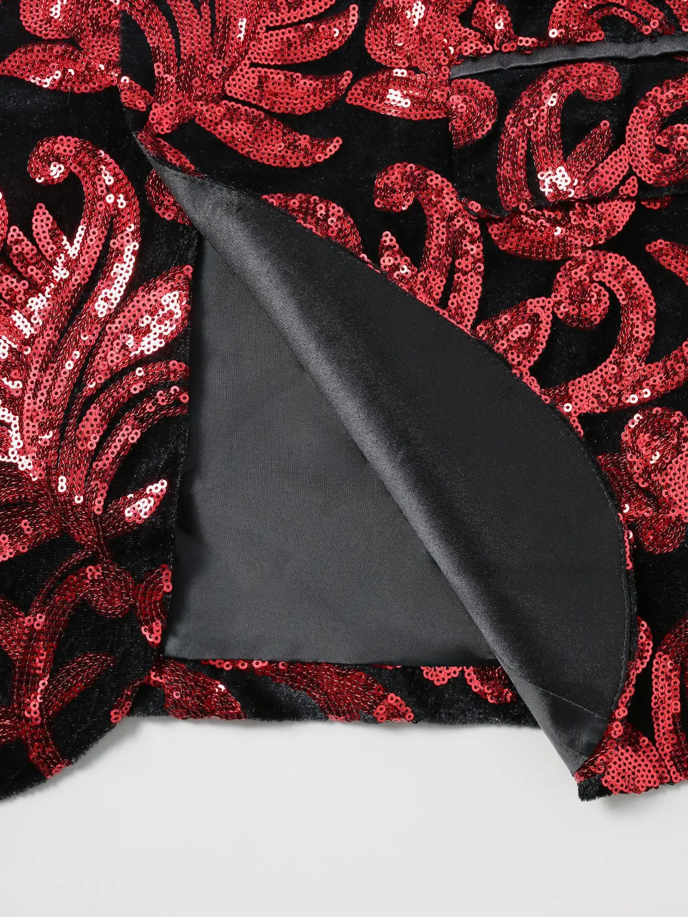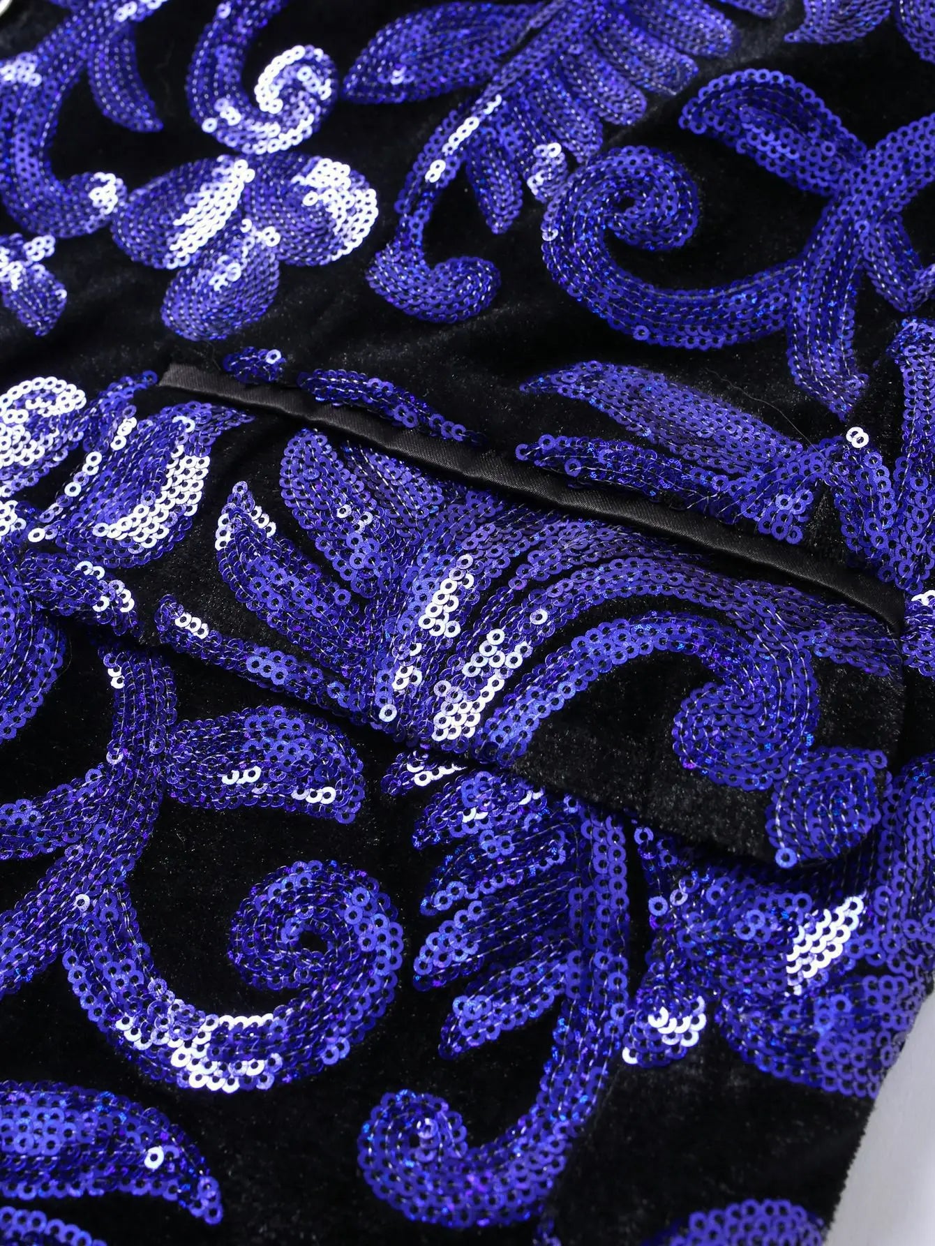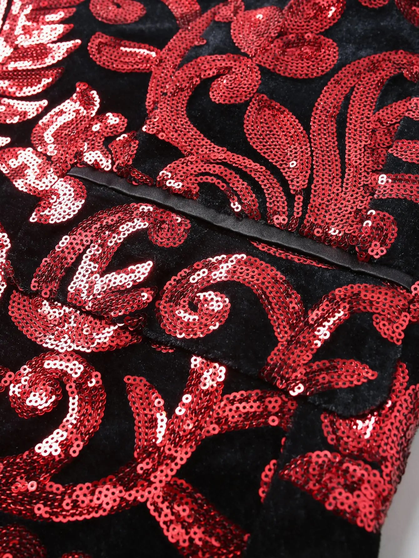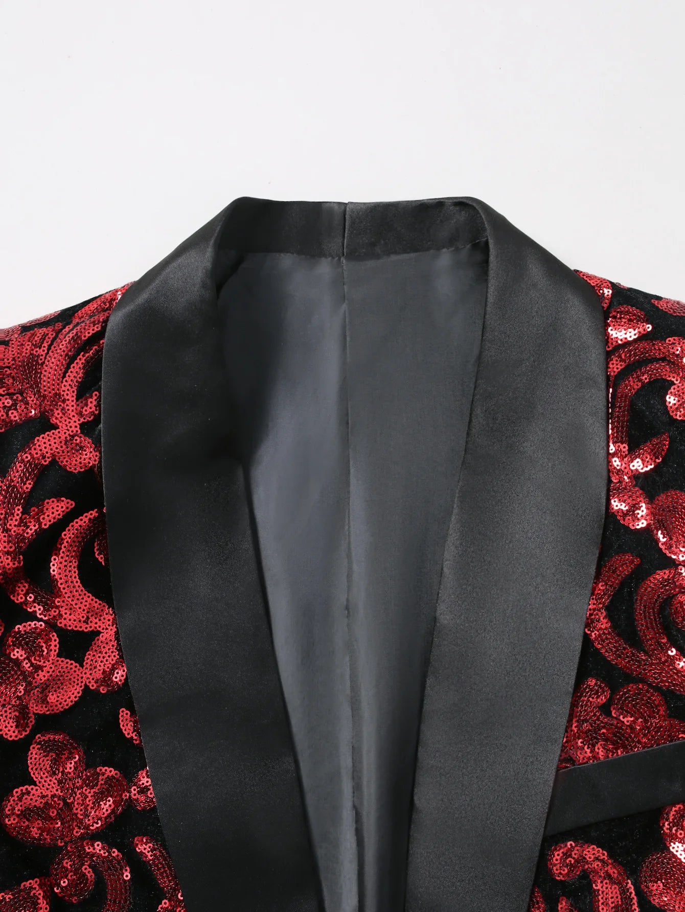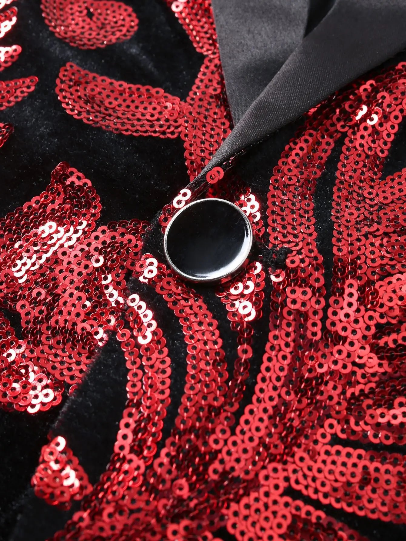 Shiny Sequin Embellished Single Button Stage Performance Outerwear in Blue Gold Green Purple Options for Men's Red Suit Jacket