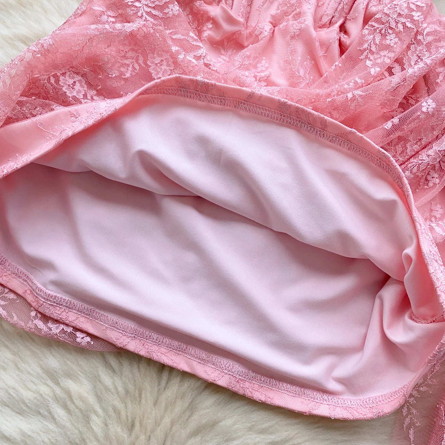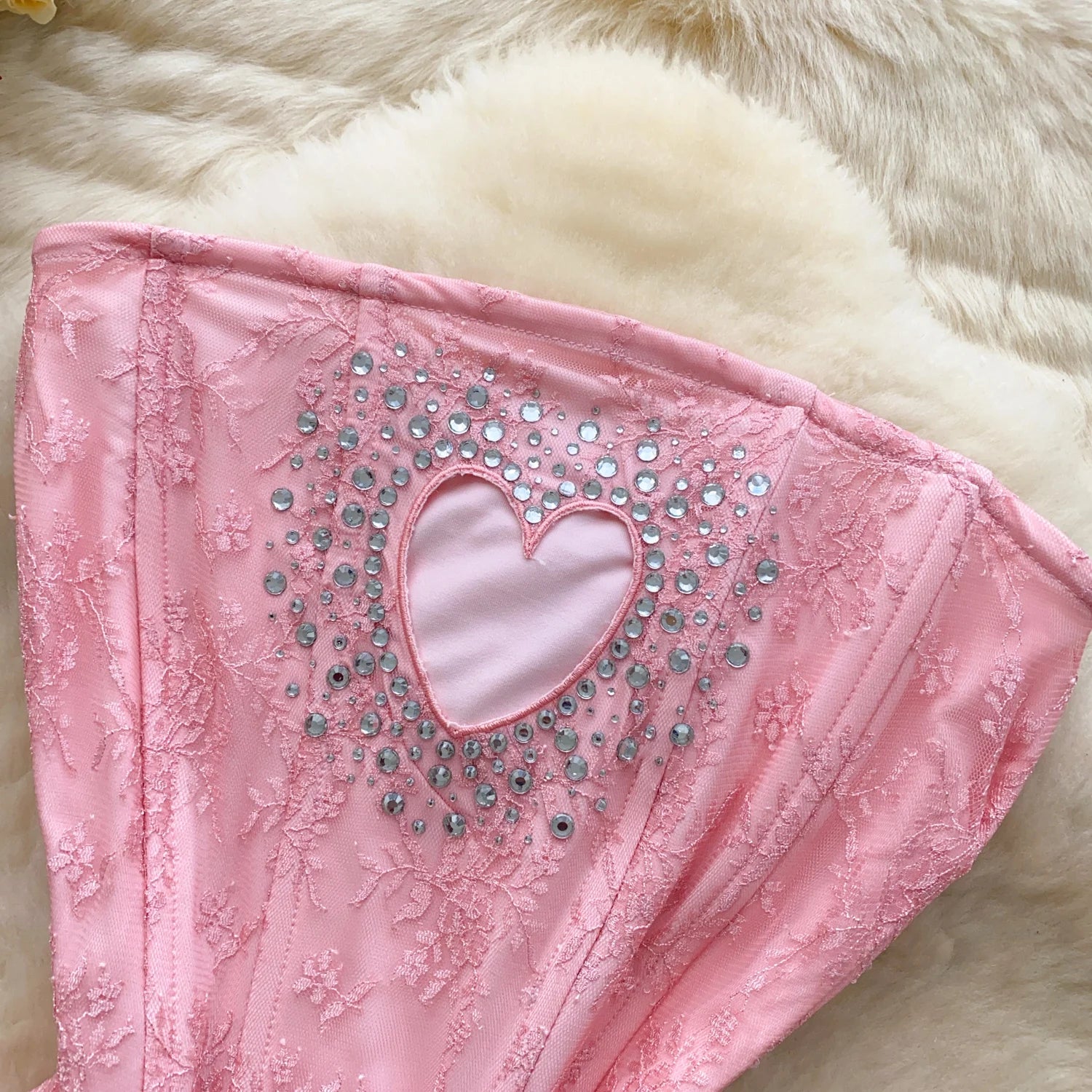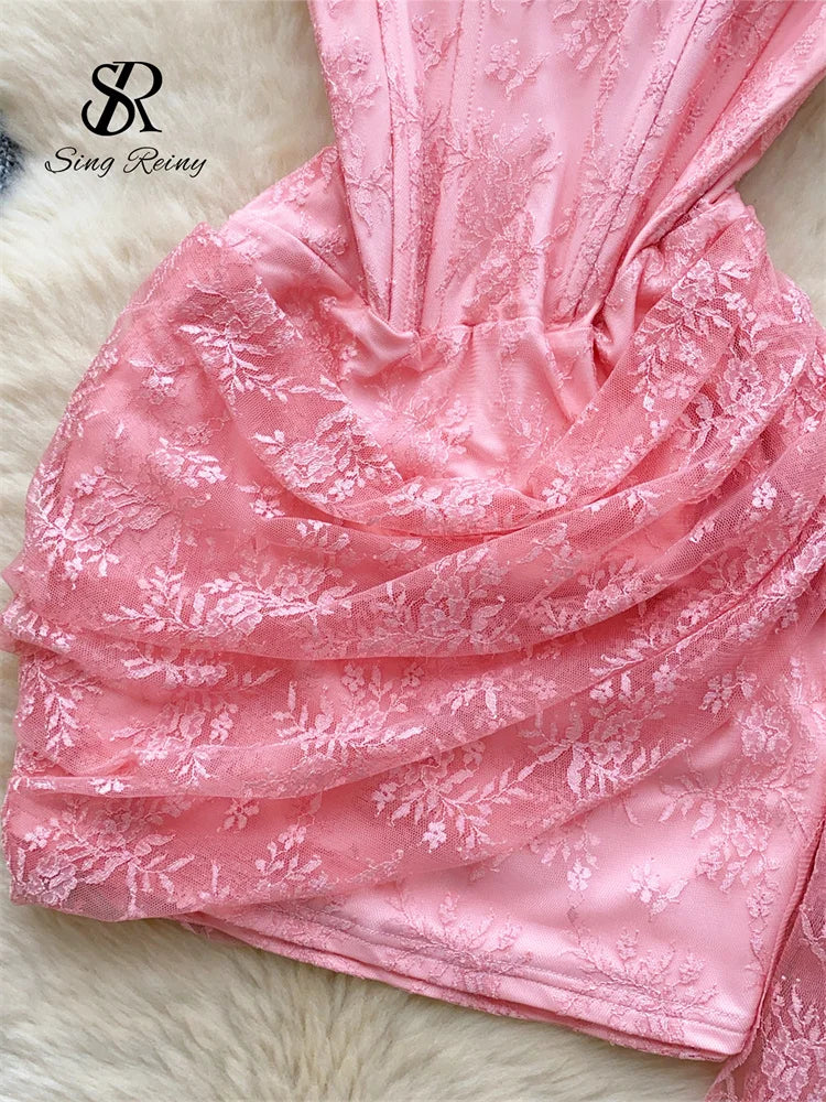 SINGREINY French Strapless Sexy Short Dress 2025 Heart Hollow Out Beading Sundress Backless Corset Lace Beach Mini Dress