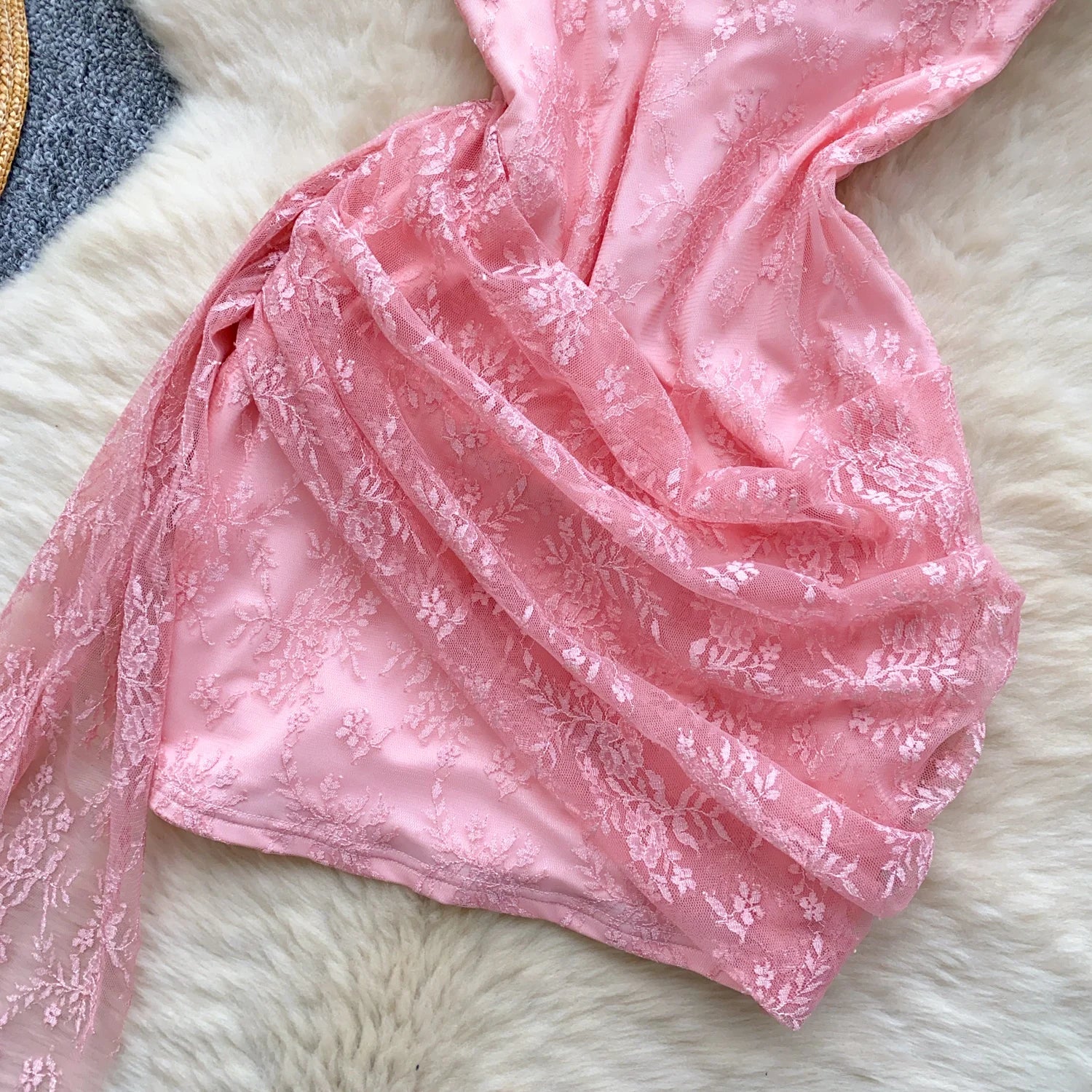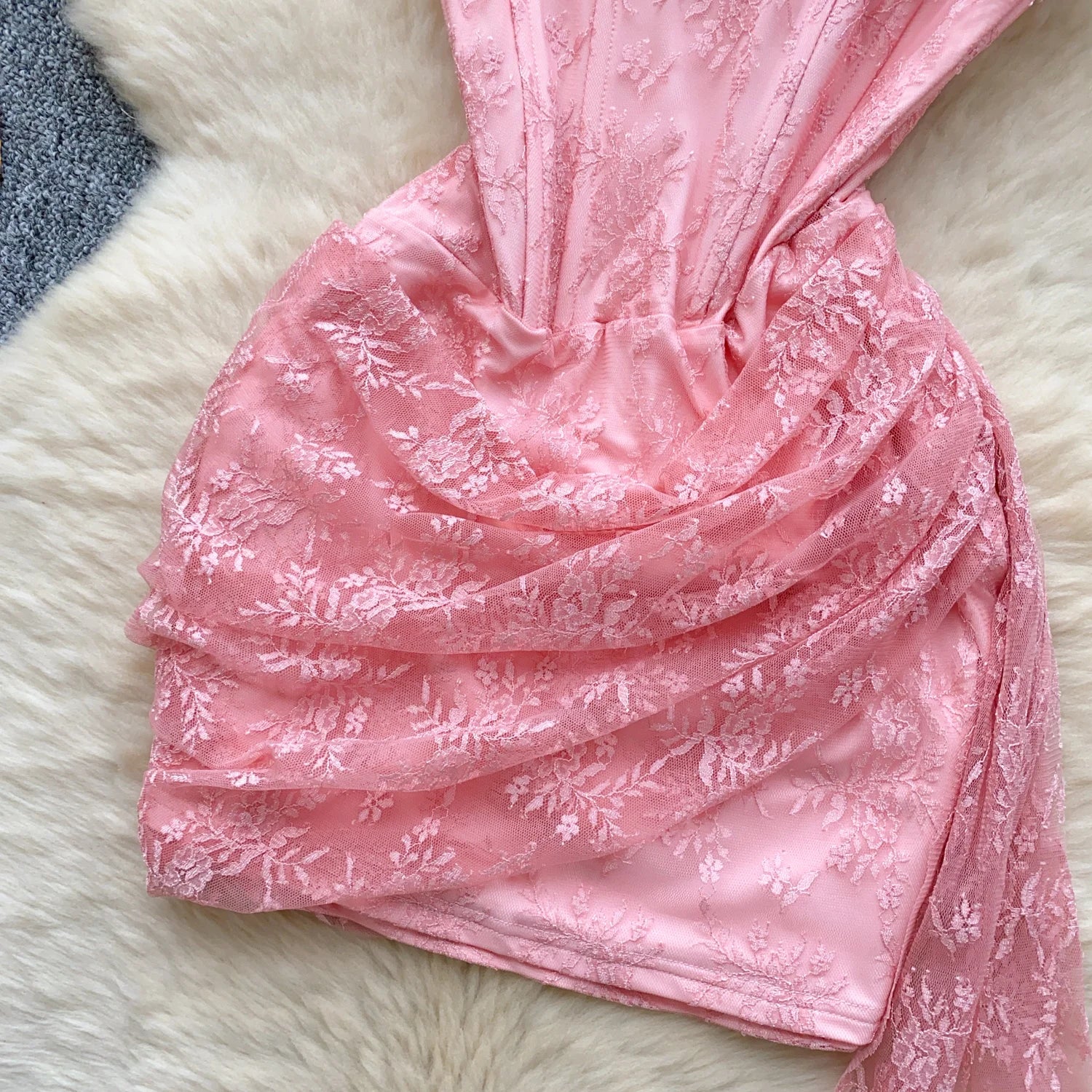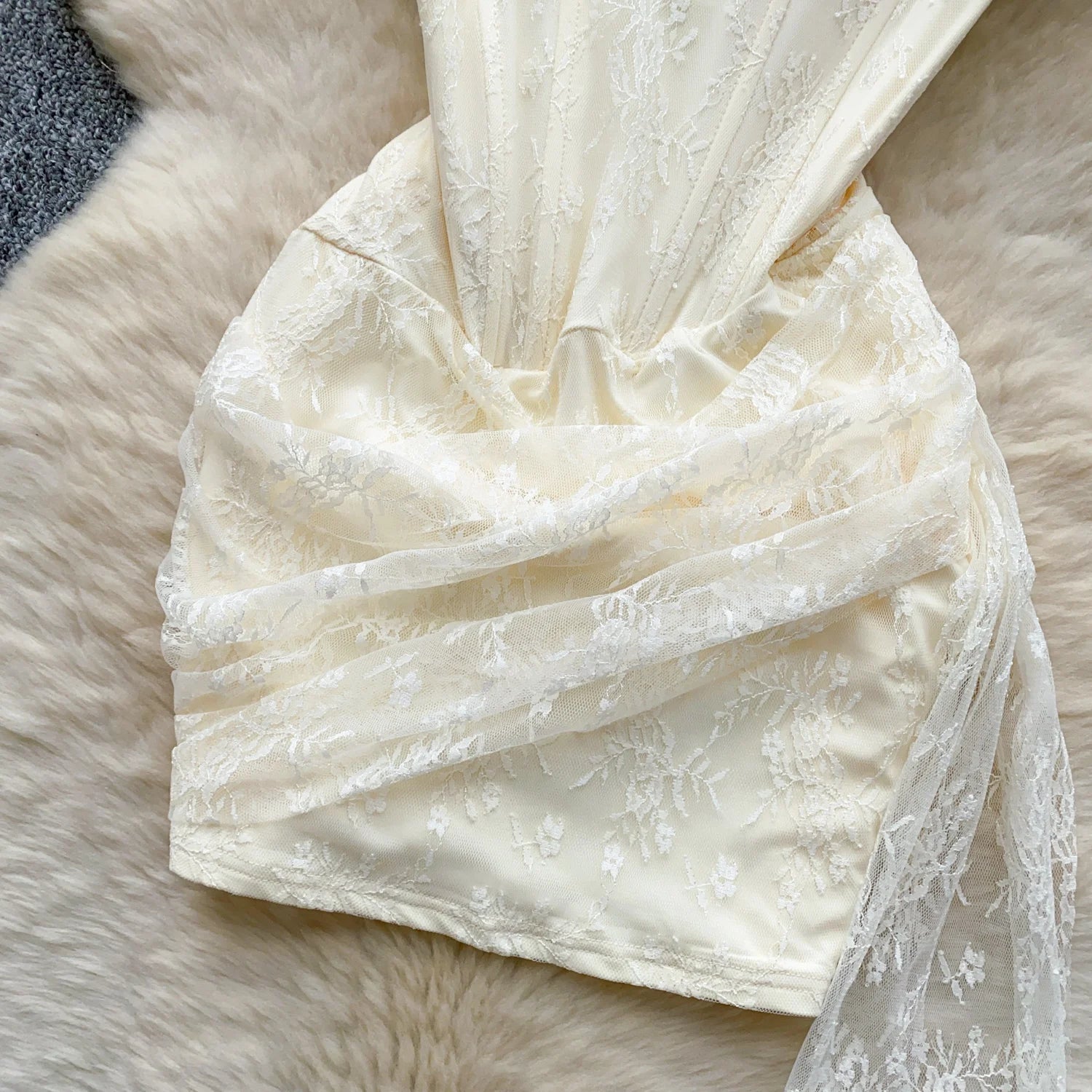 SINGREINY French Strapless Sexy Short Dress 2025 Heart Hollow Out Beading Sundress Backless Corset Lace Beach Mini Dress