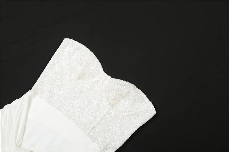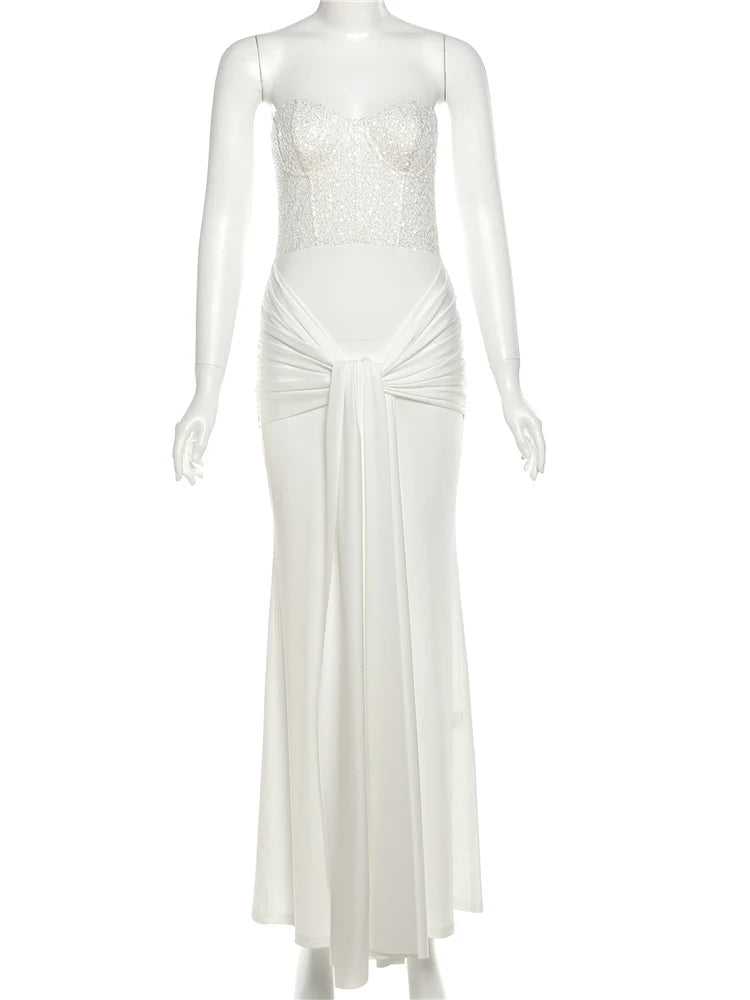 Sisterlinda Sexy Strapless Dress Woman Sequins Patchwork Backless Knot Ribbon Wrap Hip Midnight Prom Party Elegant Long Bodycon