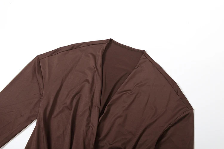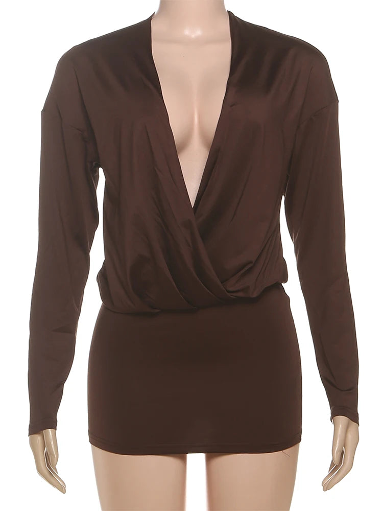 Sisterlinda Women's Elegant Deep V-Neck Mini Dress Full Sleeve Skinny Peach Hip Midnight Club Party Sexy Fashion Solid Bodycon